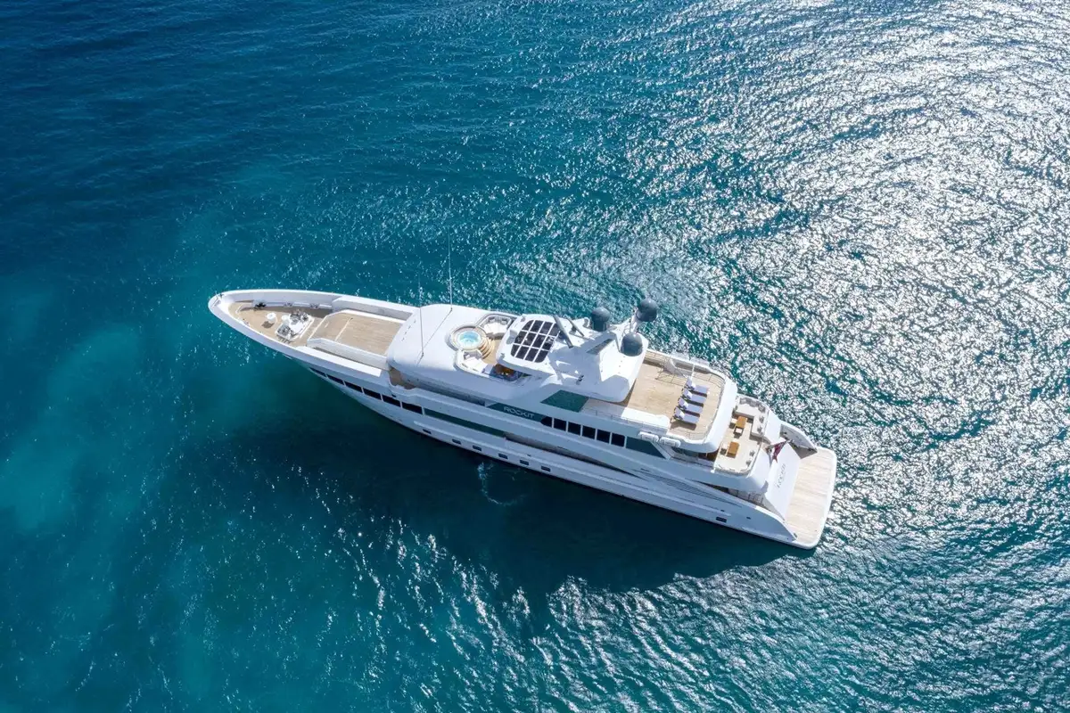 She accommodates 10 guests in five cabins, including a full beam master suite, two sizable VIP suites, one king-sized double cabin and a twin cabin.
