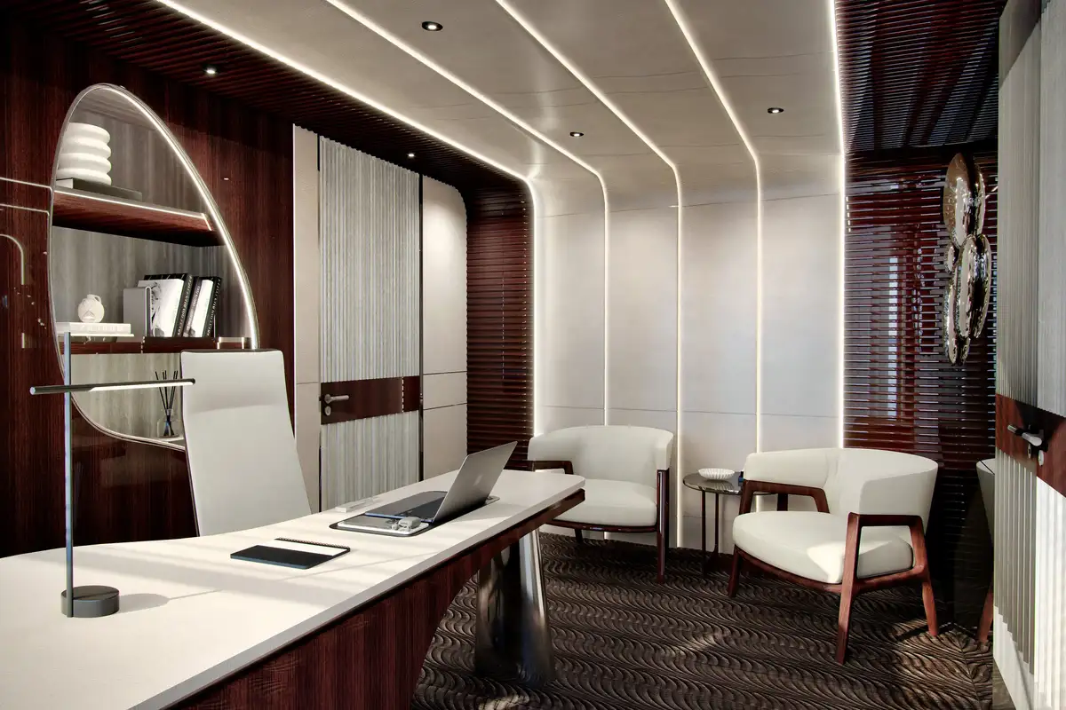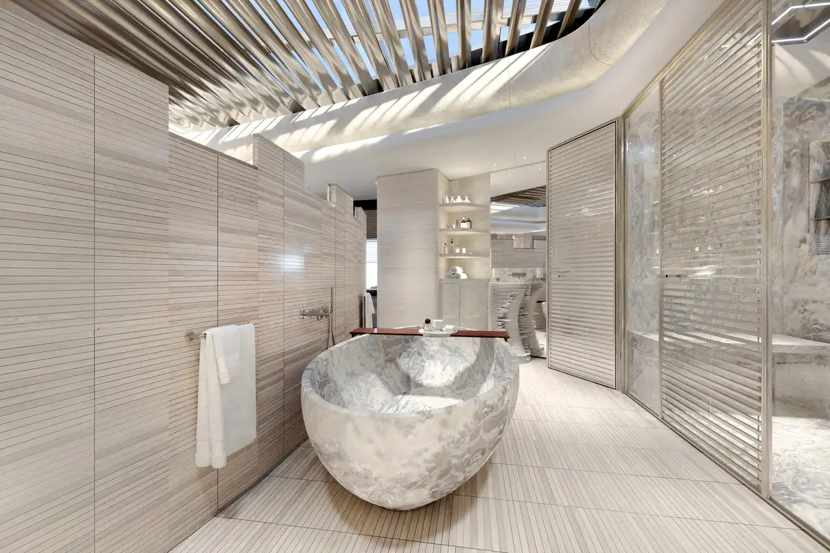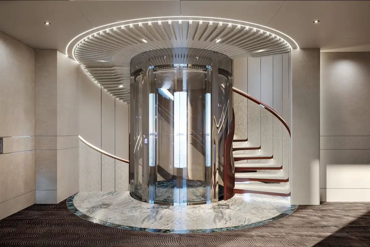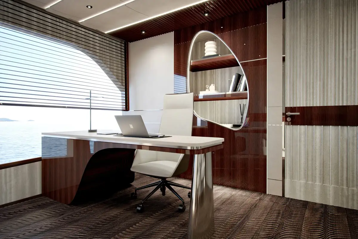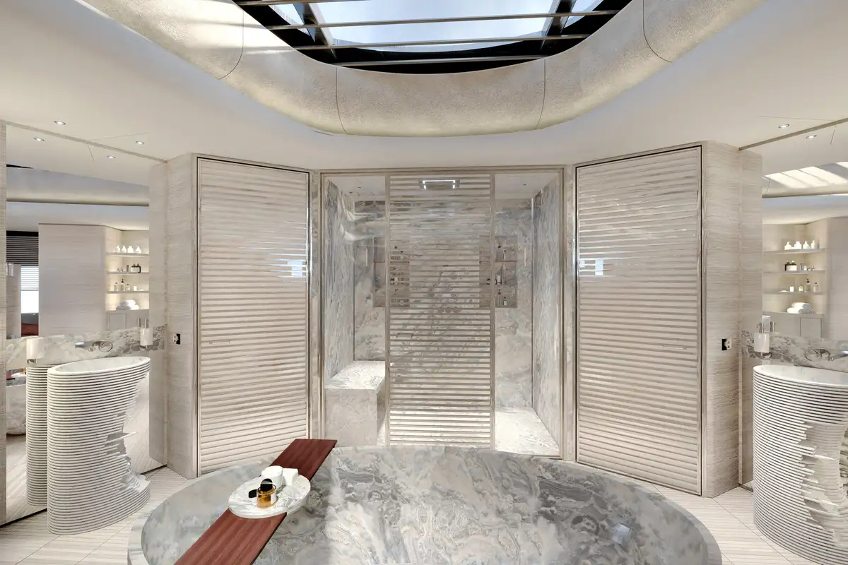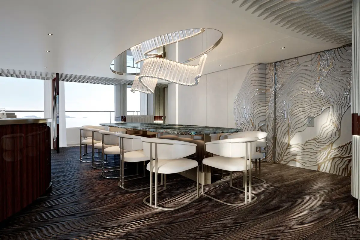 With flexible accommodation for 12-14 guests across six or seven double cabins served by an elevator to all decks, she is equally suited for family cruising or entertainment. Her advanced engineering ensures not only impressive range and efficiency but also smooth, stable passages thanks to her four zero-speed stabilisers.