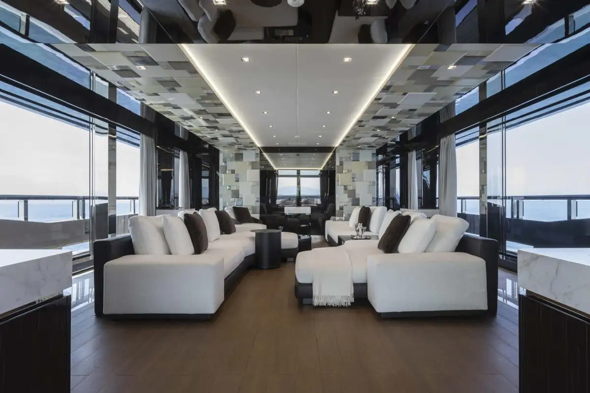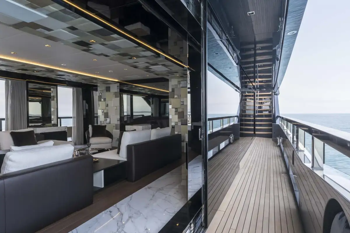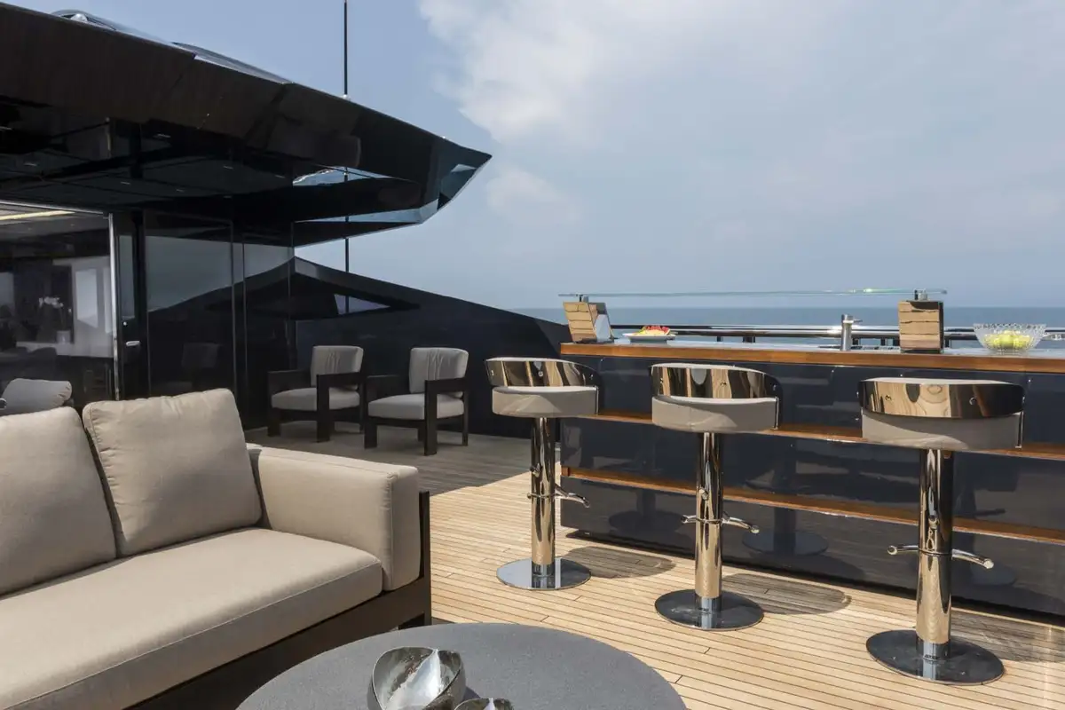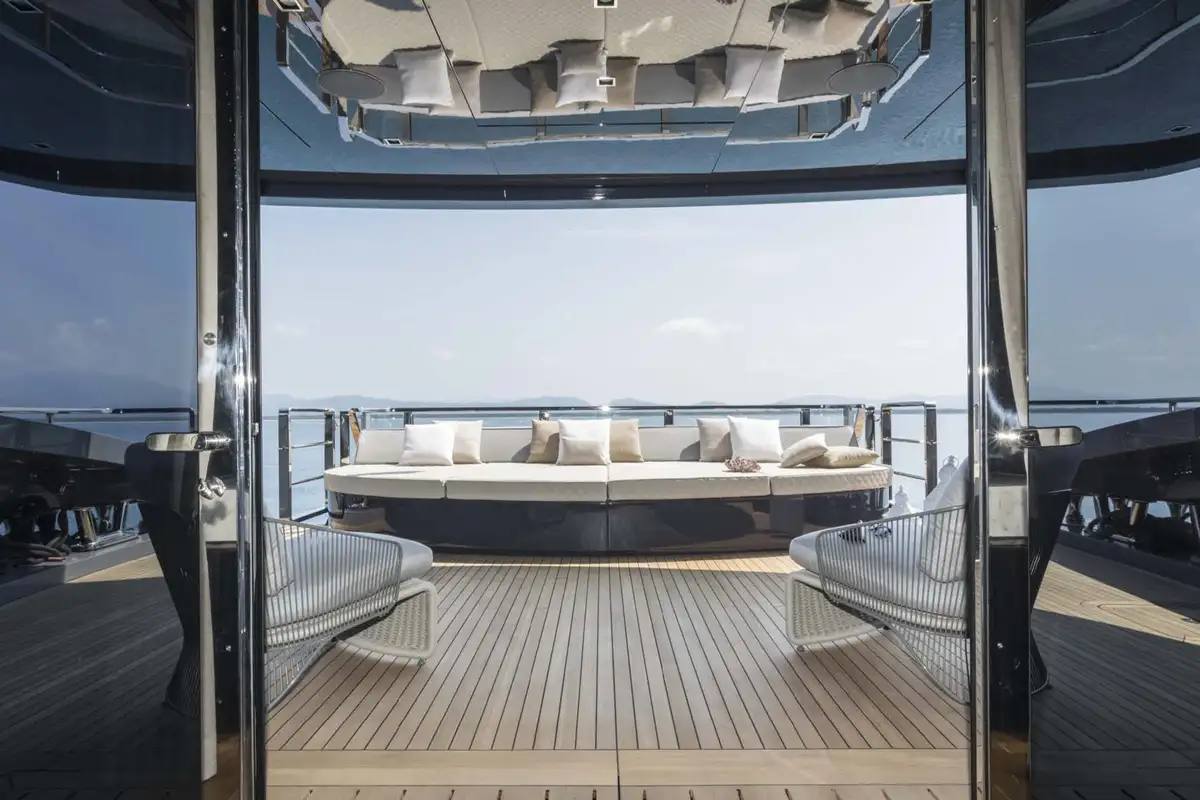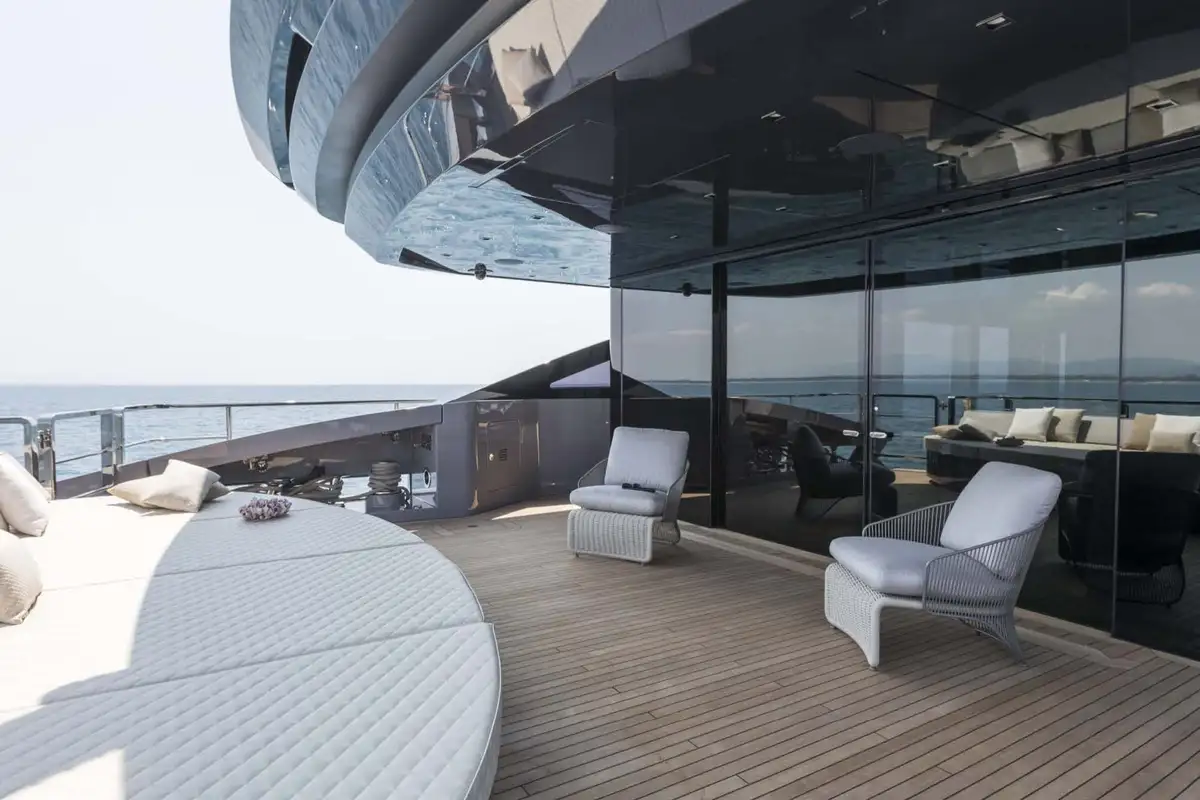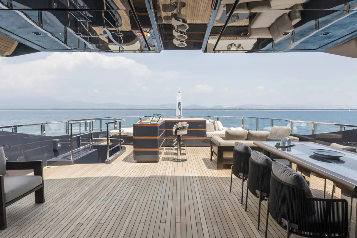 The lower deck features a relaxing beach club area with bulwarks able to fold down flat to become side terraces where sun loungers can be placed.
