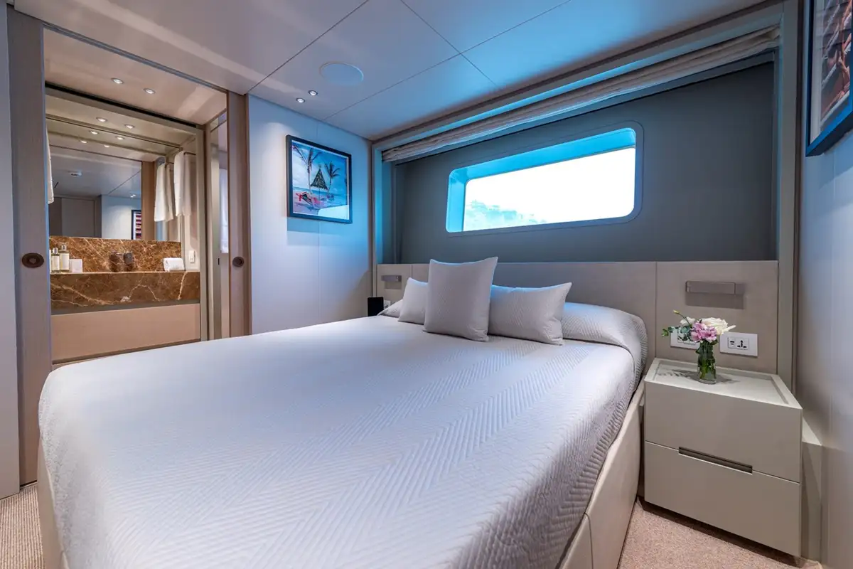 She accommodates up to 10 guests in five beautifully appointed cabins.