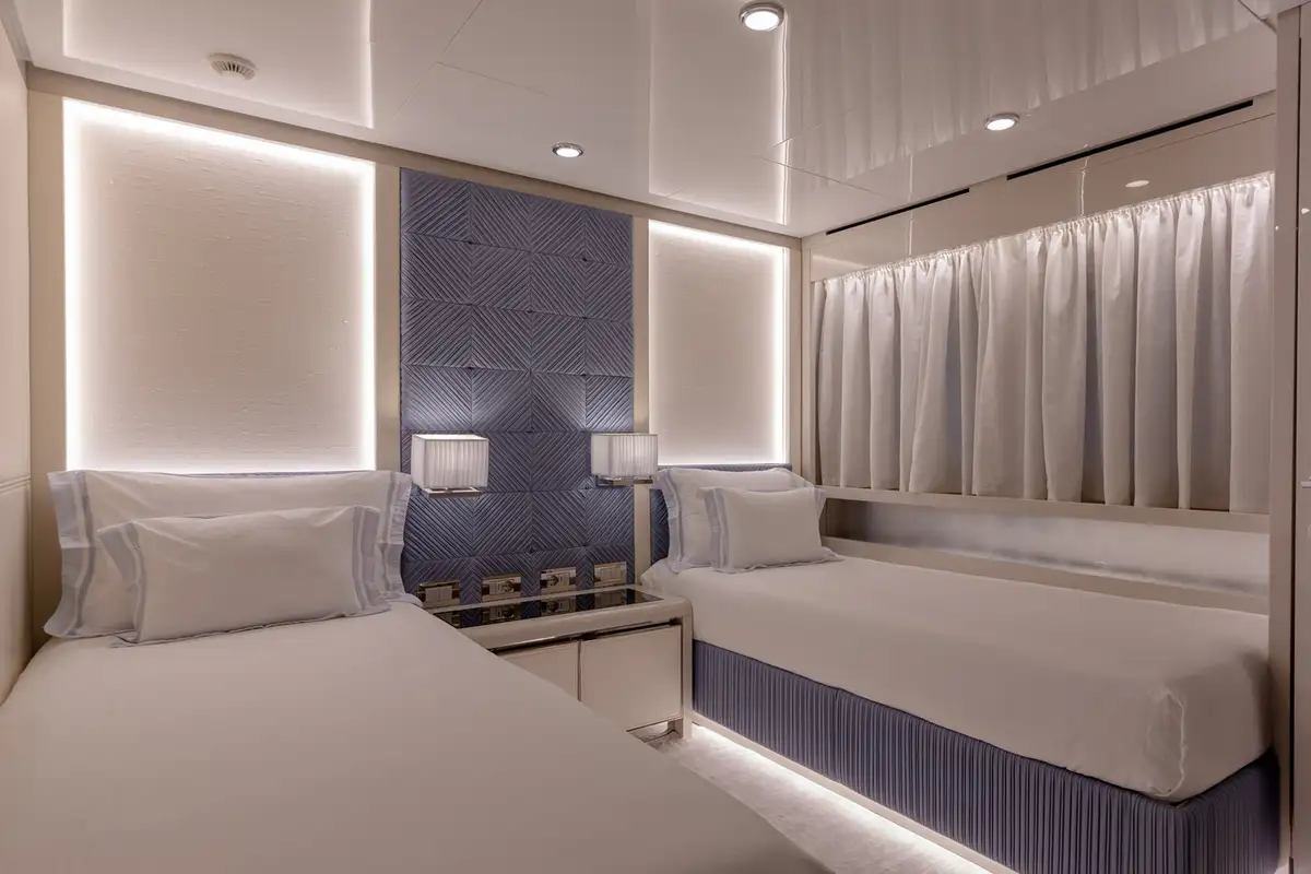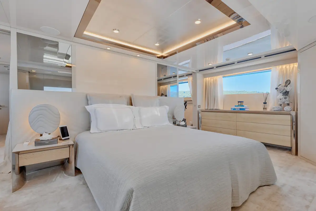 She features exterior design by Francesco Paszkowski, with naval architecture by Sanlorenzo. Up to 10 guests can be accommodated on board the superyacht, she also has accommodation for 5 crew members, including the ship's captain.