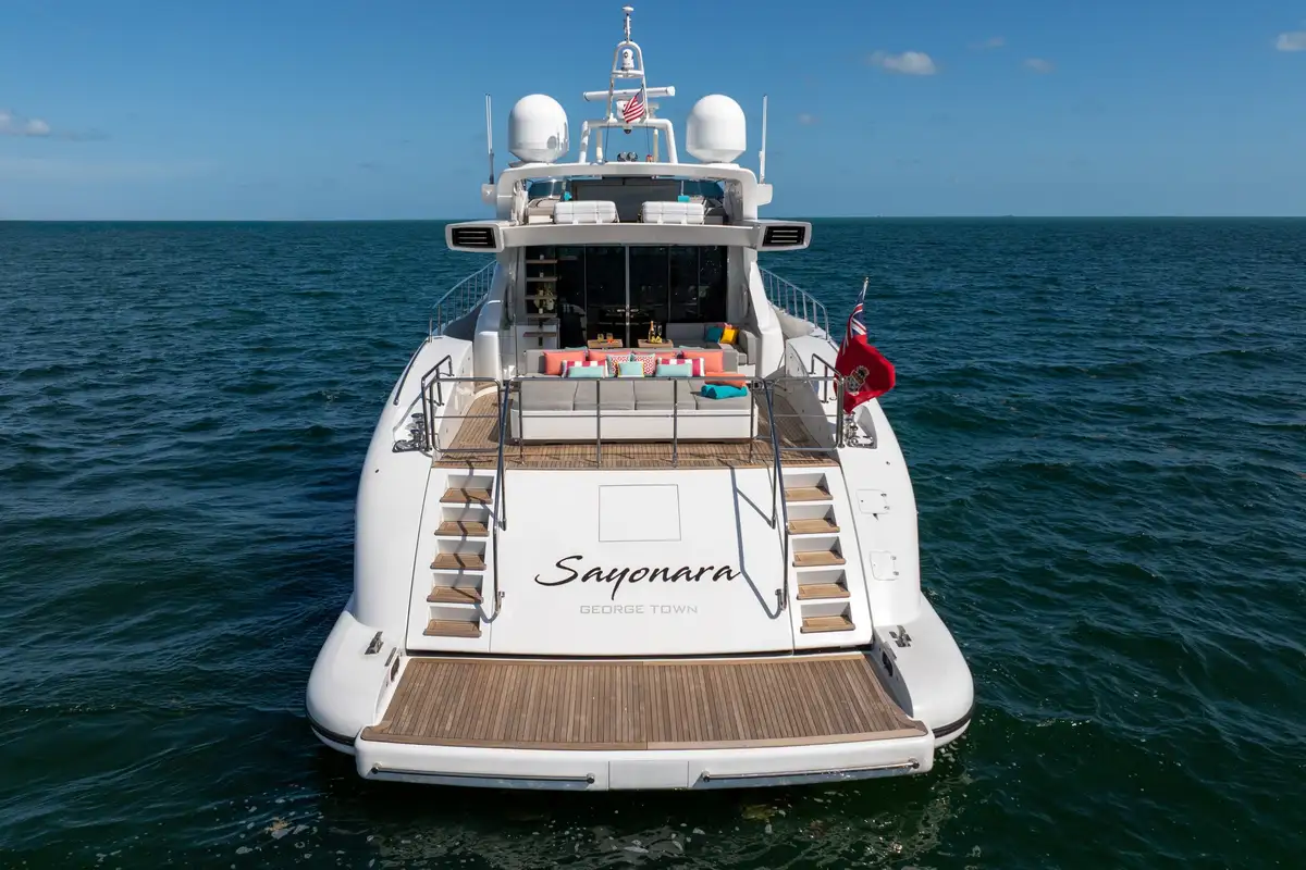 Powered by twin MTU 16V2000 M94 engines with water jet propulsion, SAYONARA cruises comfortably at 32 knots, with a top speed of 36 knots. With a shallow draft of just 1.6m (5.2ft), she can access even the most exclusive destinations. Ideal for island hopping or day trips, SAYONARA is an exceptional opportunity not to be missed.