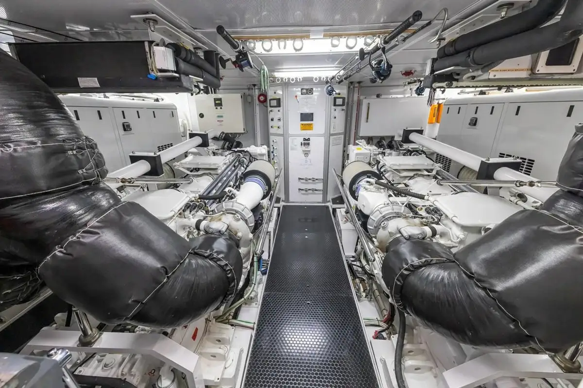 She cruises at 22 knots with a top speed of 25 knots, powered by twin Diesel MTU 16V 2000’s each with an output of 2,000hp. SEAHAWK has been fitted with two Northern Lights Generators and Naiad zero speed stabilizers