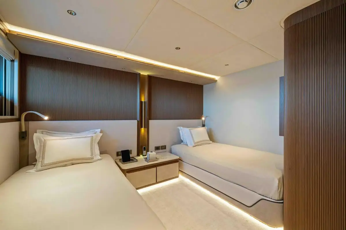 Powered by twin Caterpillar engines, SERENISSIMA I reaches a top speed of 17 knots, with a comfortable cruising speed of 12 knots. Built to RINA classification and delivered in 2024, she offers a rare opportunity to own a refined, fully custom motor yacht.