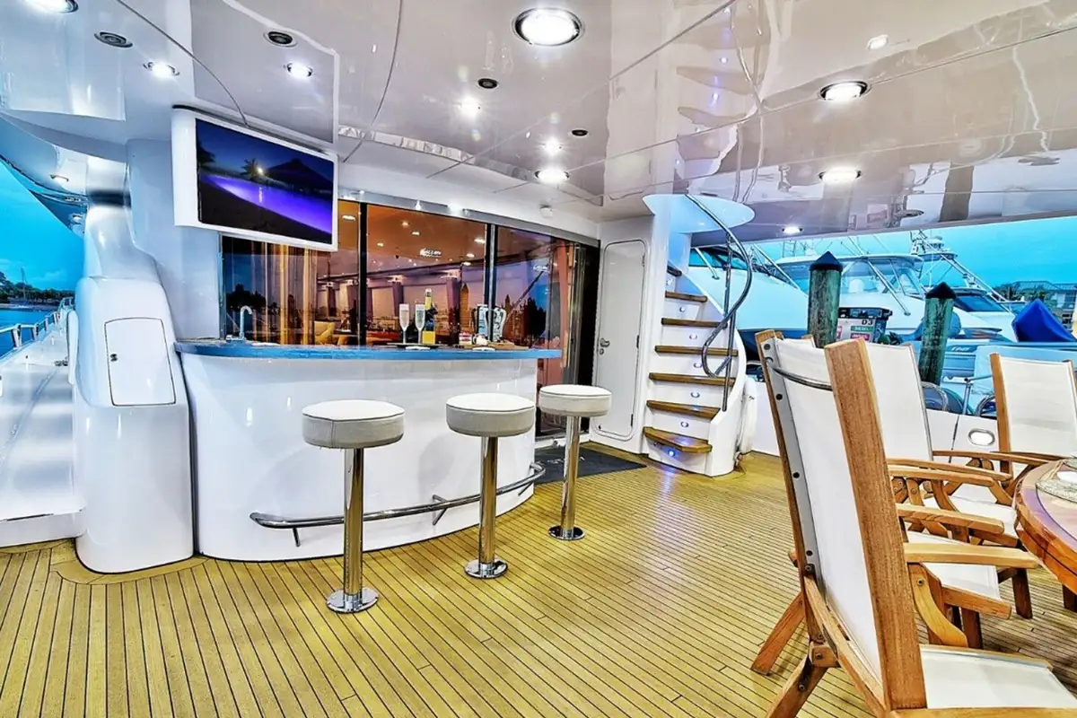 Her exterior styling is a combination of long sweeping modern lines with timeless design touches everywhere you look. In near perfect condition SERENITY has been tirelessly maintained by a full time crew from day one.