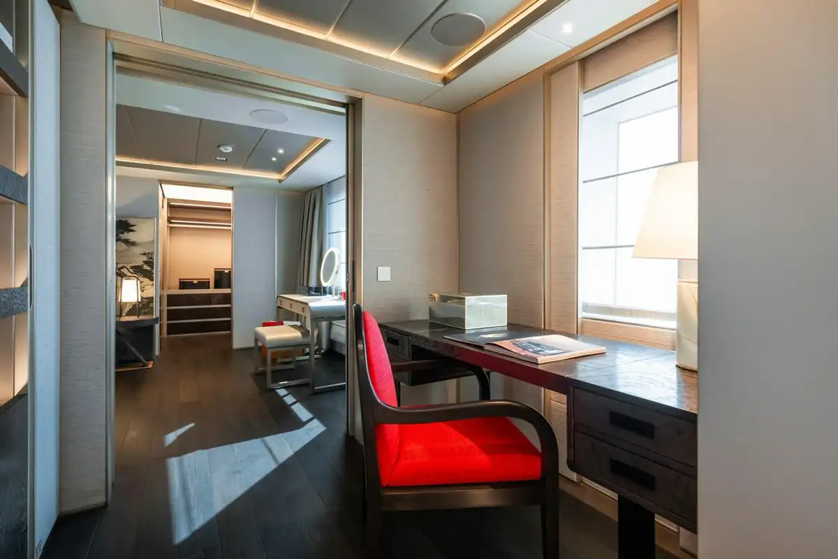 The main sun deck atop the superstructure is another highlight, dominated by a very large jacuzzi with a bar under a central hardtop and sunbathing space astern. The upper aft deck gives another very large outdoor space with dining half shaded by the sun deck overhang and a sun lounge aft.