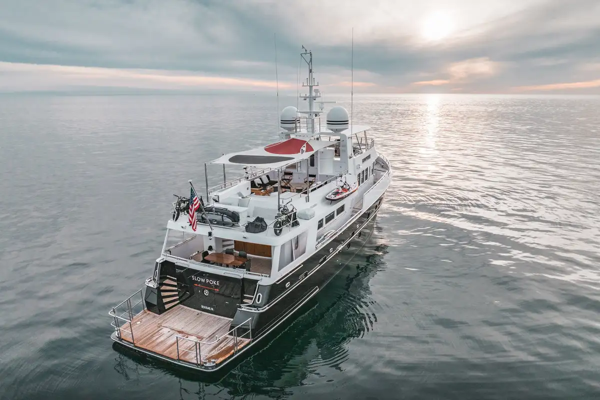 Originally launched in 2000, the iconic 27.5m (90.2ft) Doggersbank explorer has been completely reimagined as SLOW POKE, a boutique superyacht that artfully blends timeless design with bold, contemporary character. Following an extensive multi-million dollar refit completed in 2021 by Safe Harbor Lauderdale Marine Center, SLOW POKE now stands as a one-of-a-kind pocket explorer built for adventure, comfort, and effortless elegance.