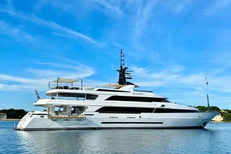 The 52m (170.6ft) motor yacht SOLAFIDE has a steel hull and aluminium superstructure built to ABS classification and delivered by Italian shipyard Benetti in 1995 with exterior design is by Stefano Natucci and refreshed interiors. She received an extensive refurbishment in 2009 and underwent a EUR 2,000,000 technical and cosmetic refit in 2021 for her class and flag surveys and a refit in 2023. She also has new furniture inside and out and a refresh of her watertoys.