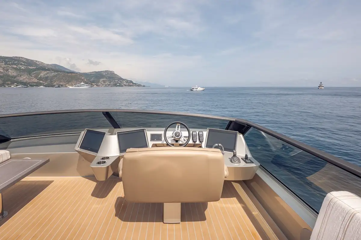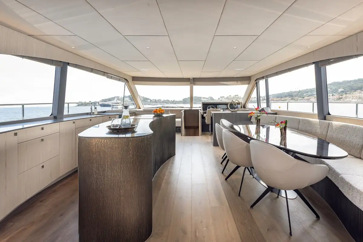 An open-plan saloon lounge and galley make the ST-BARTH II ideal for family use or social trips with friends. Exterior spaces aboard this luxury motor yacht include a spacious flybridge, a seating area and Jacuzzi on the bow, and a four-metre-wide swim platform at the stern. Equipped with a Teppanyaki grill as well as two barbecues, well-placed drinks fridges and wine coolers, and integrated speakers, there are plenty of options for dining and entertaining.