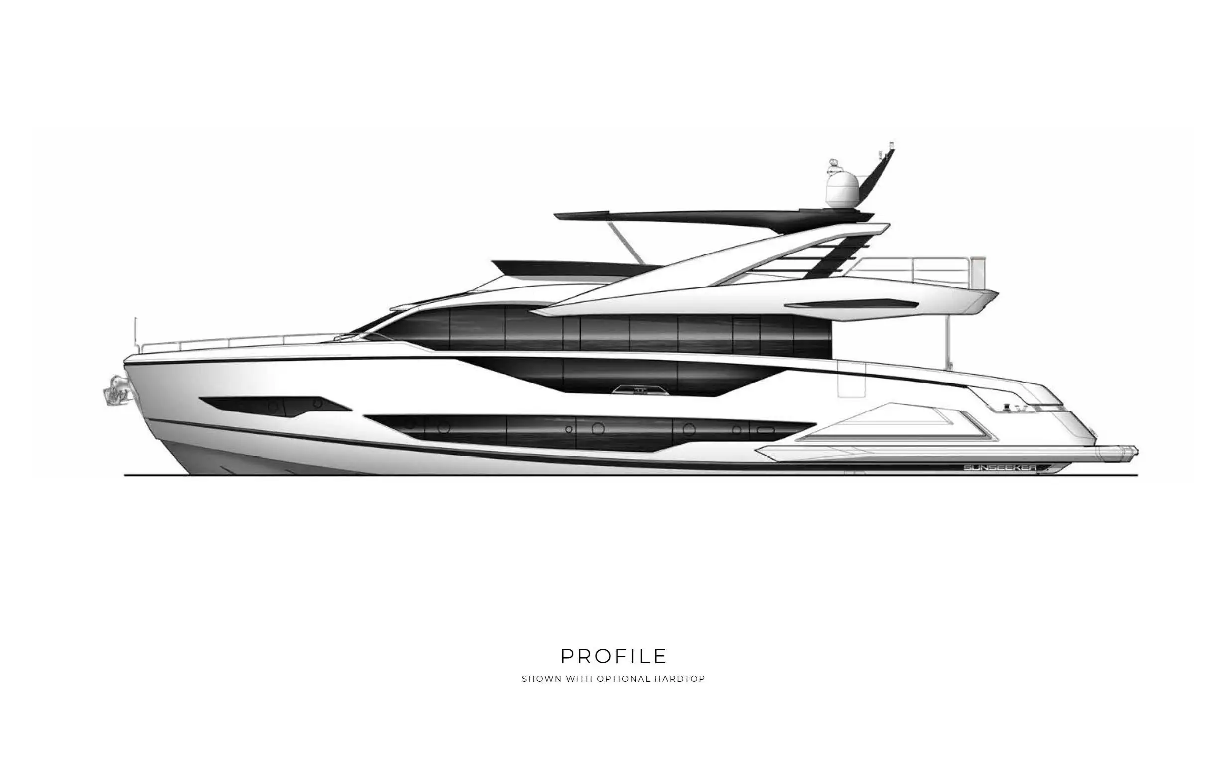 The Sunseeker 90 Ocean is a 27-metre (89ft) yacht built in fibreglass with a notably high-volume interior. Designed to host up to eight or 10 guests with separate quarters for up to four crew, she has two main levels of guest accommodation.