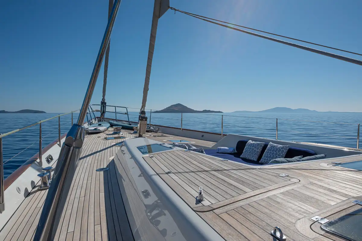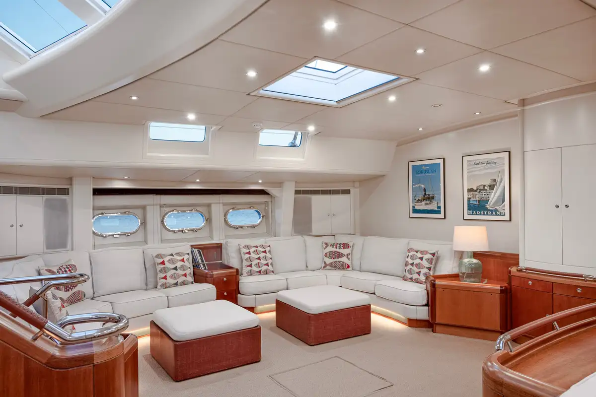 When not sailing, SURAMA is powered by two Mercedes 570hp engines, allowing her to cruise at 11 knots with a maximum range of 4,305nm.