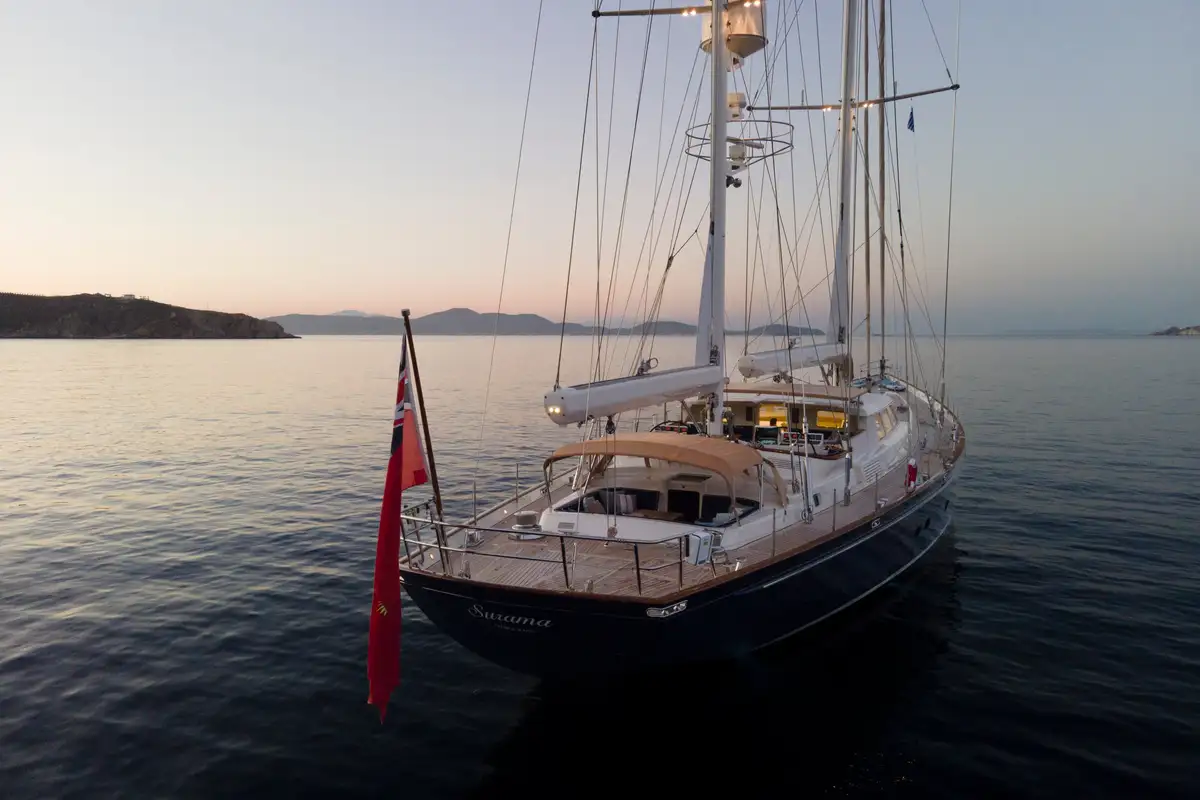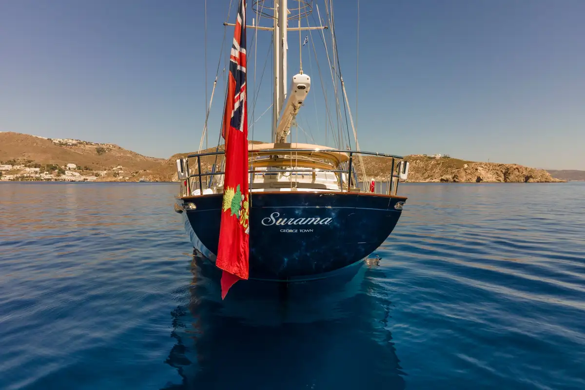 The 40.7m (133.5ft) ketch sailing yacht SURAMA is a stunning example of Royal Huisman’s world-renowned shipbuilding pedigree, and has been meticulously maintained and upgraded since she was first delivered in 1997 including a full refit at Royal Huisman in 2017. SURAMA was conceived as a world cruiser capable of self-sufficient, unsupported voyages to the most remote corners of the planet, while her lightweight Lloyd’s-classed aluminium hull delivers rewarding performance in regattas.