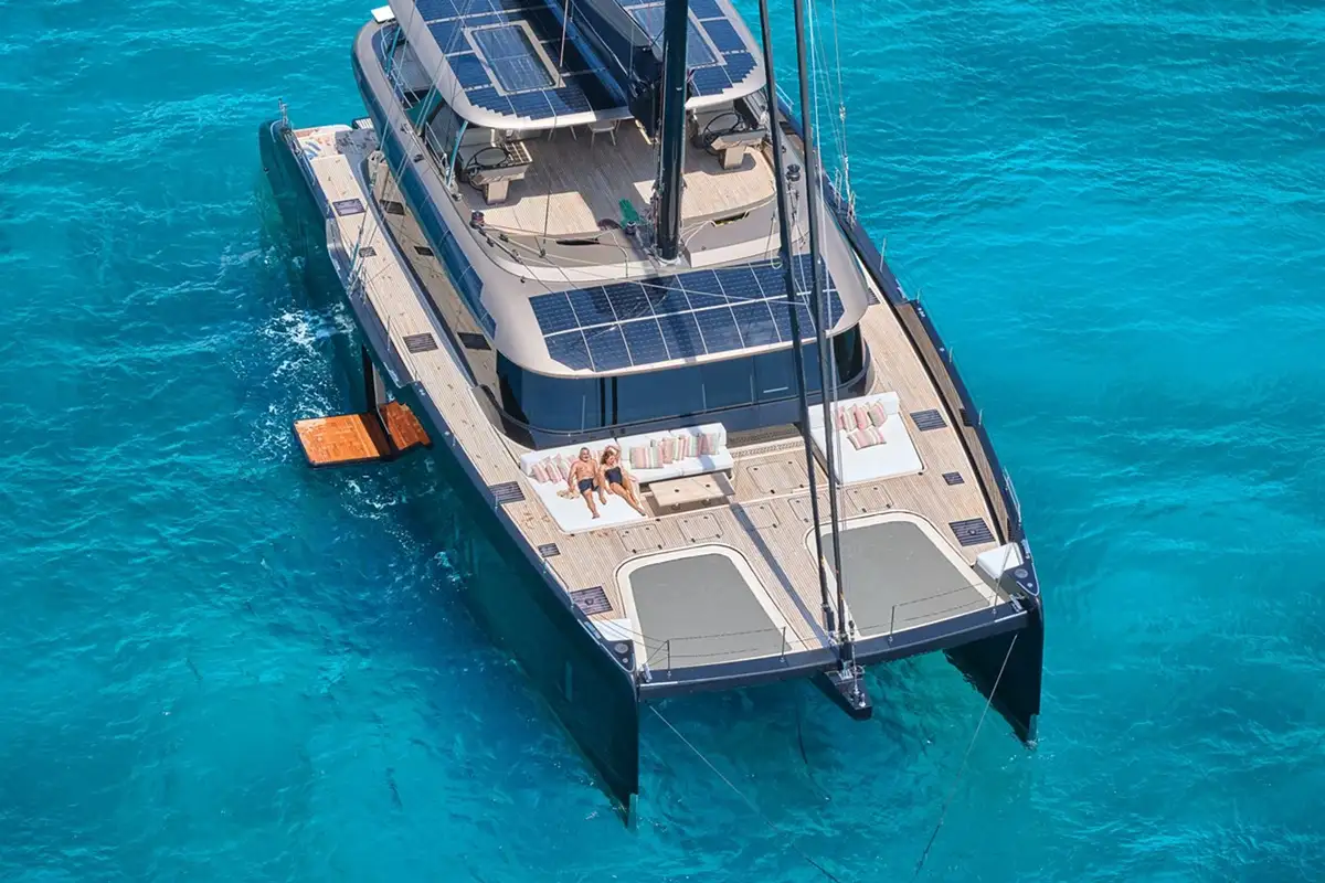 The solar energy allows for extended periods at sea, whether you’re exploring remote coastlines or simply enjoying a peaceful day on the water. THE IDLER has managed to sail for over 7 days while crossing the Atlantic without needing any intervention from the generator and that was running aircon and all other systems as normal.