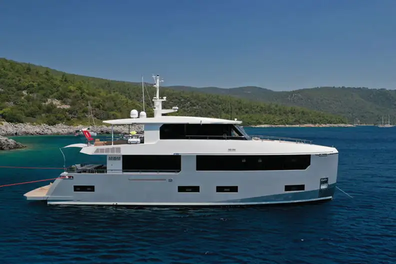 The Aegean Explorer 26m is a full displacement, steel-hulled explorer yacht delivered in 2024. Designed and developed entirely inhouse by the Aegean team, this go everywhere, genuine world cruiser has a steel hull with aluminum superstructure ensuring a stable ride and excellent handling while at sea.