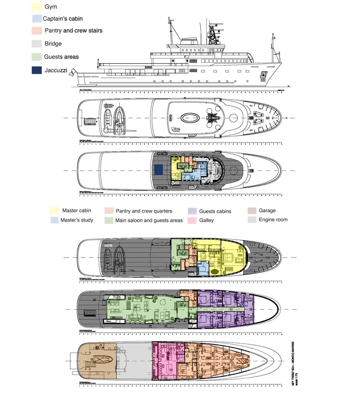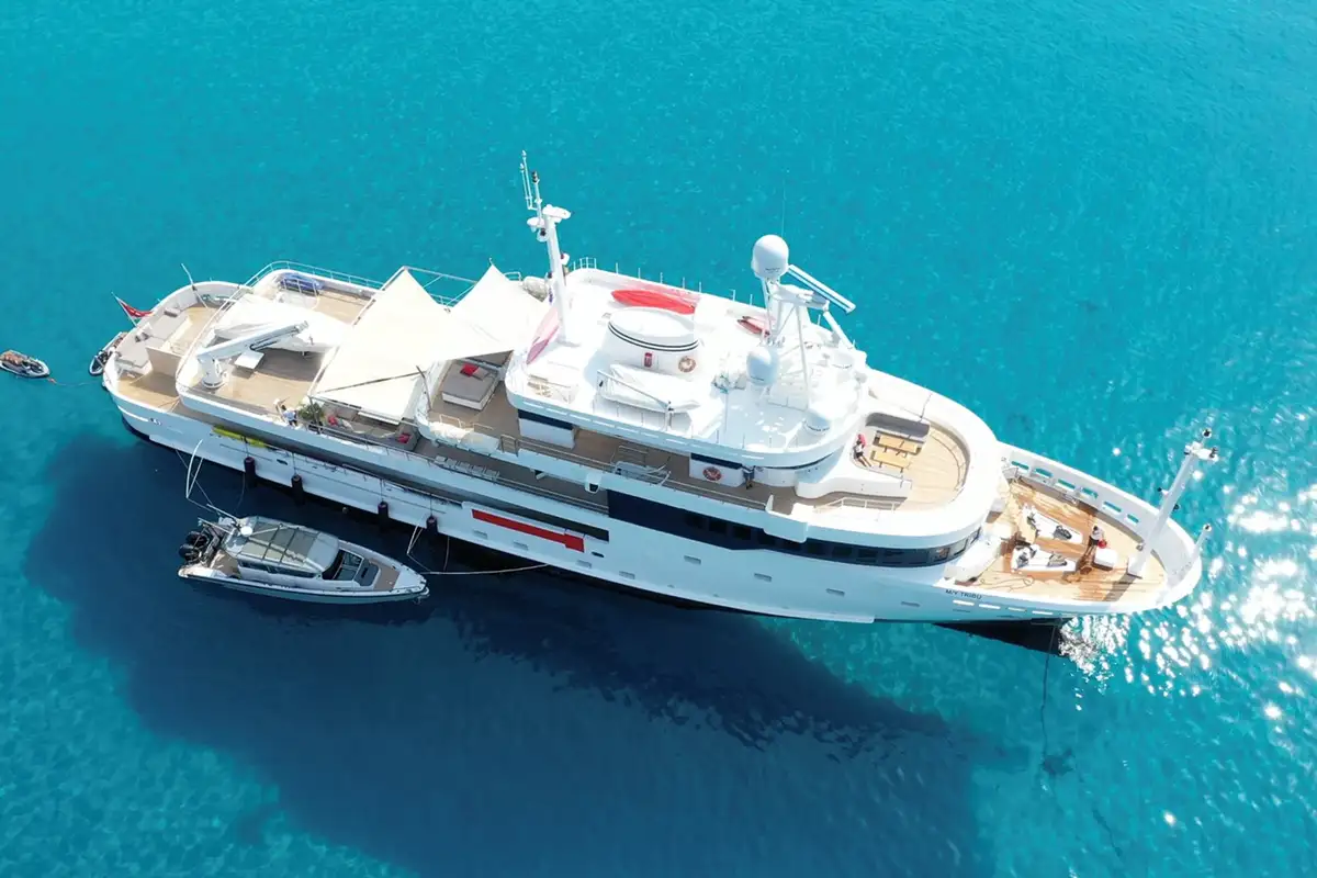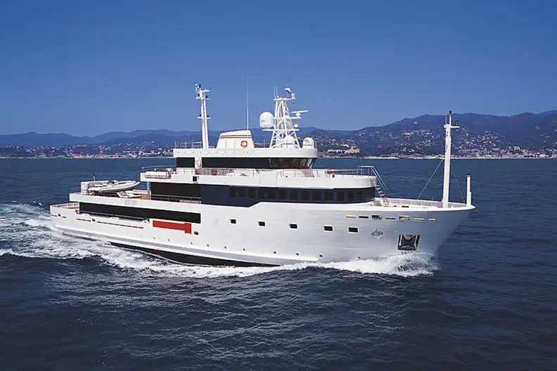 A 50.5-metre quad-deck explorer yacht from Italy’s Mondomarine shipyard, TRIBU was delivered in 2007. Her highlights include a dedicated owner’s deck with a very large master suite, a hull designed for all-weather seakeeping and a high-volume interior.