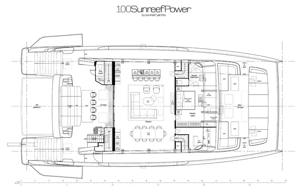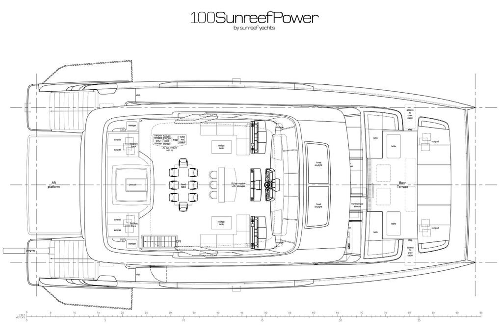 With her generous beam, the TWILIGHT offers immense alfresco relaxation areas and vast interiors