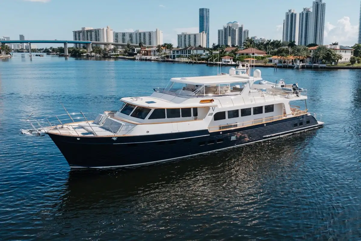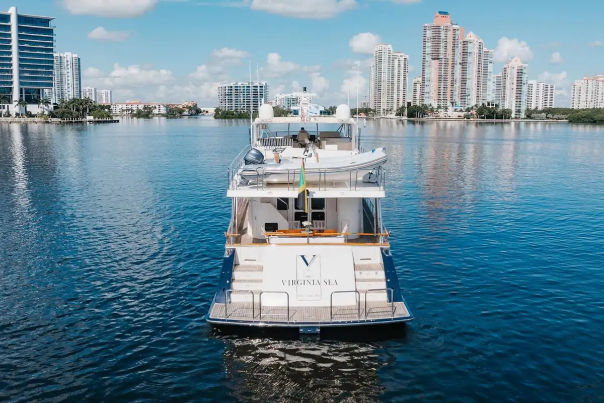 Her expansive flybridge is perfect for entertaining, and she is in turnkey condition. Powerful twin Caterpillar diesel engines with 1,900hp each give VIRGINIA SEA a remarkable max speed of 29 knots and cruising speed of 23 knots. She is equipped with Yacht Controller, making docking a breeze, and she has been meticulously maintained.