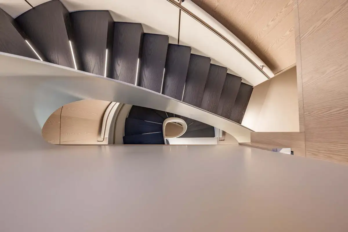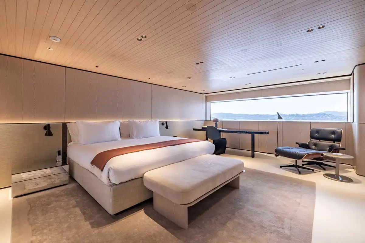She offers greater on-board space and is more stable when at anchor thanks to her full-displacement hull. Powered by twin Caterpillar engines, she comfortably cruises at 12.5 knots, reaches a maximum speed of 16.5 knots with a range of up to 4,000 nautical miles from her 80,000 litre fuel tanks at 11 knots.