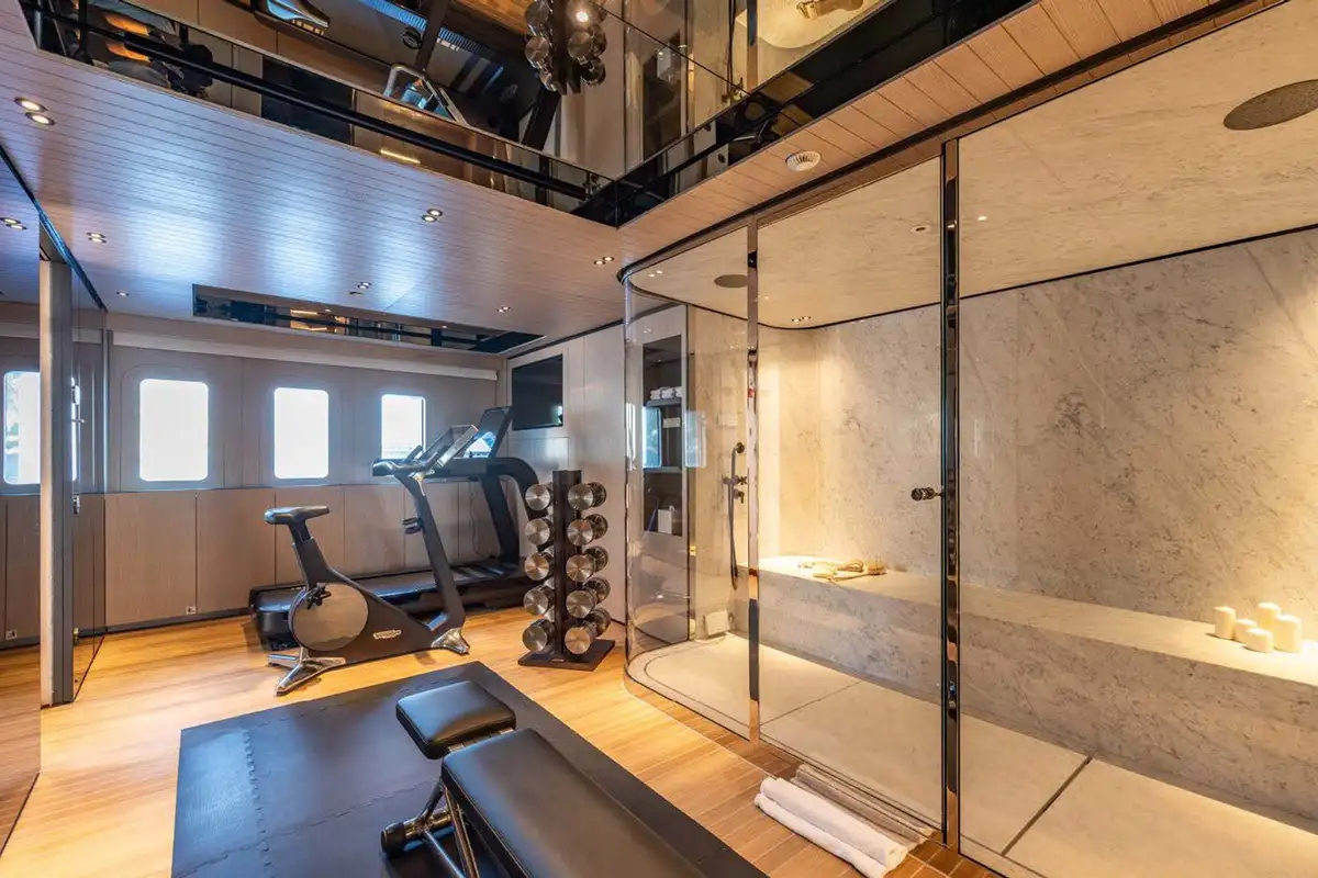 VIRTUOSITY yacht’s layout has been carefully designed to offer both generous social spaces and quiet corners across her decks. Her features include a spa, beach club and gym.