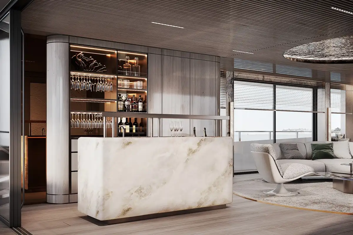 - Incredible performance provided by Van Oosanen Naval Architects’ proven Fast Displacement hull form