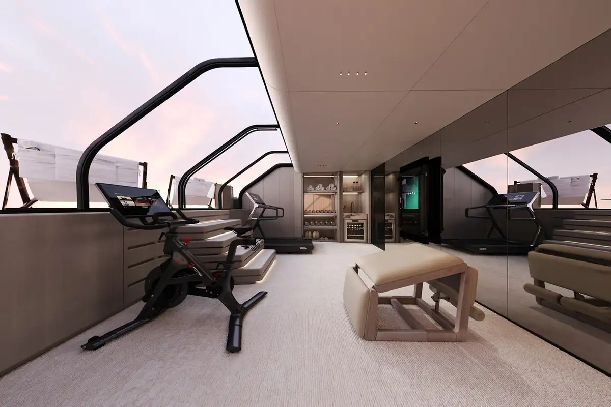 - Gym with incredible views through full glass sliding doors adjacent to swim platform
