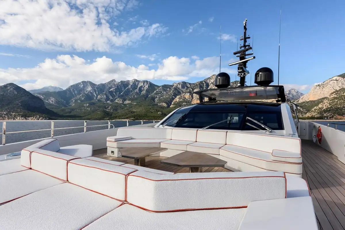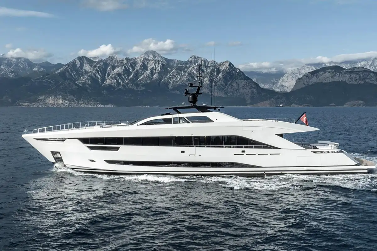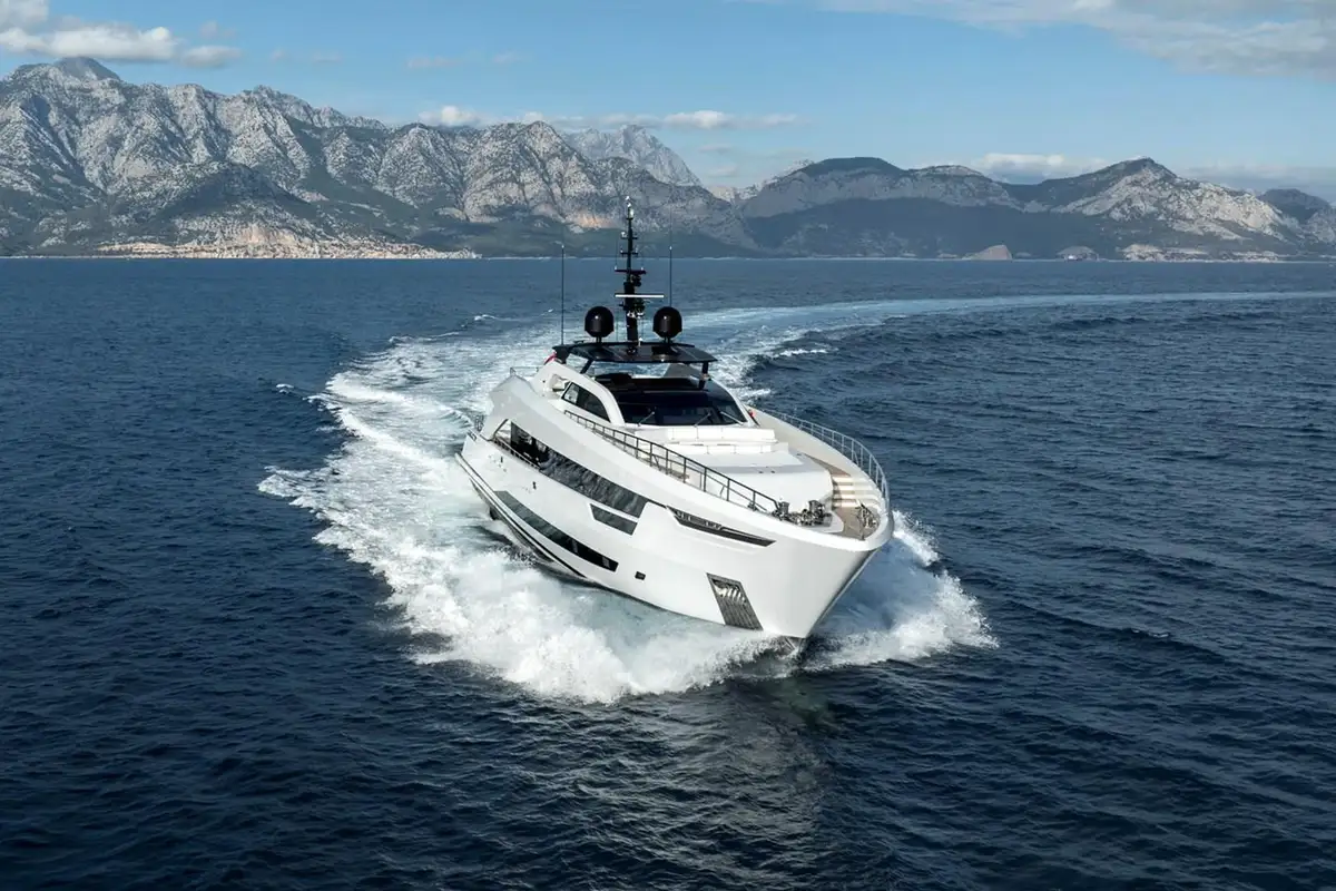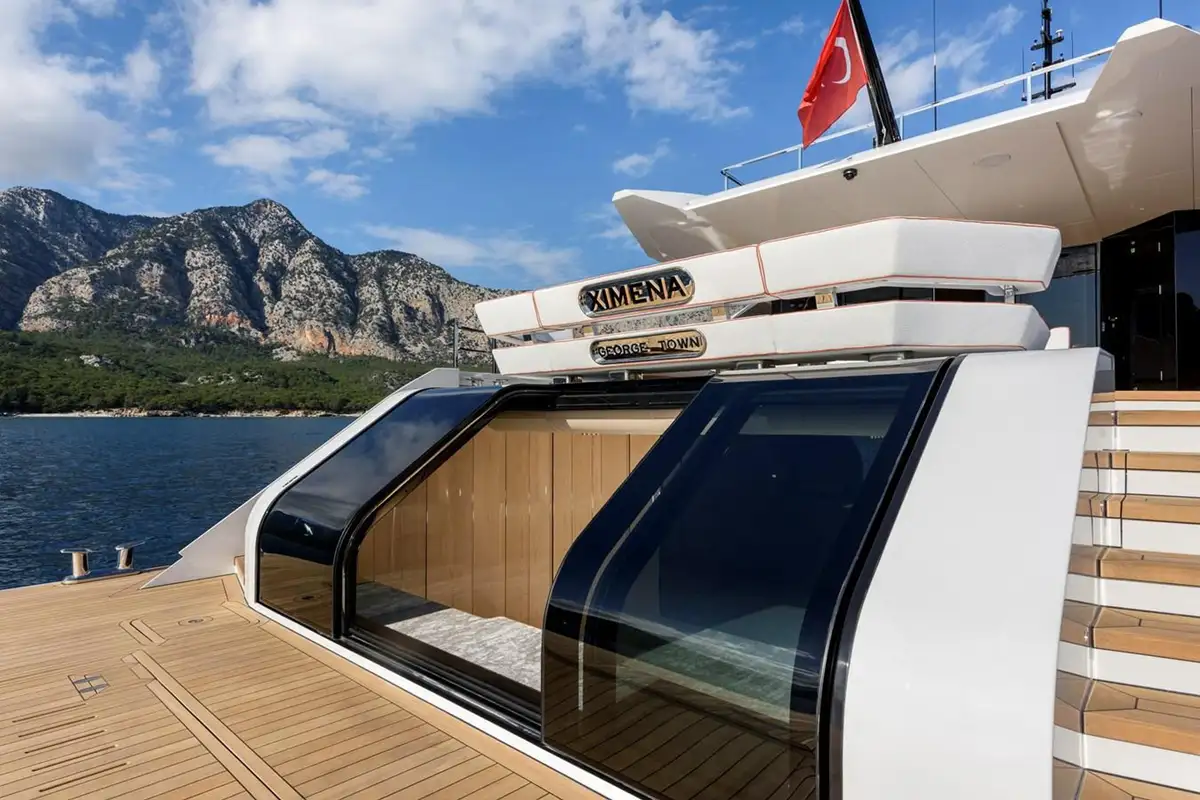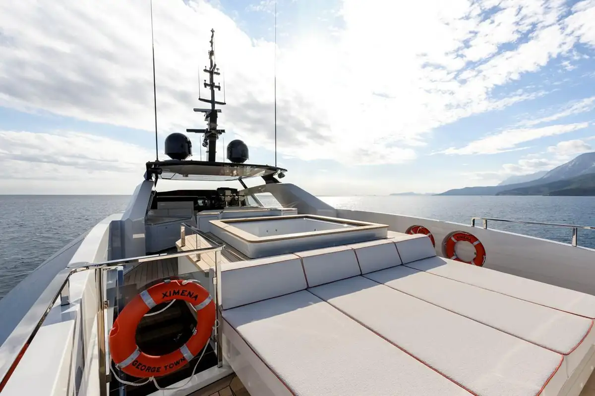 XIMENA, a 43.0 m Motor Yacht, built in Turkey by Alia Yachts and delivered in 2026. Her top speed is 22.5 kn and she boasts a maximum range of 3200.0 nm when navigating at cruising speed, with power coming from two MTU diesel engines. She can accommodate up to 10 guests in 5 staterooms, with 7 crew members waiting on their every need. She has a gross tonnage of 380.0 GT and she is built with a Teak deck, a Aluminum hull, and Aluminum superstructure.