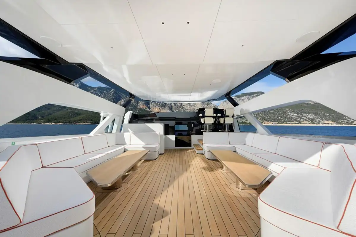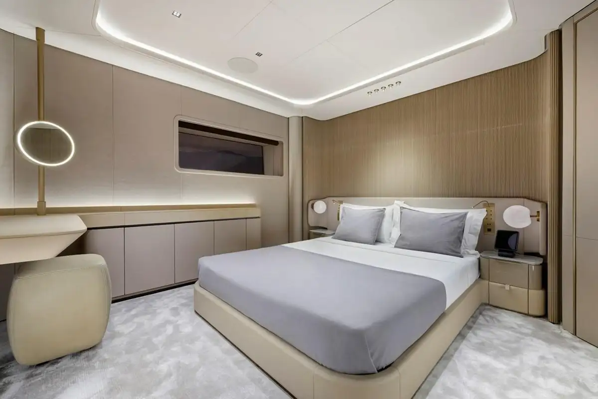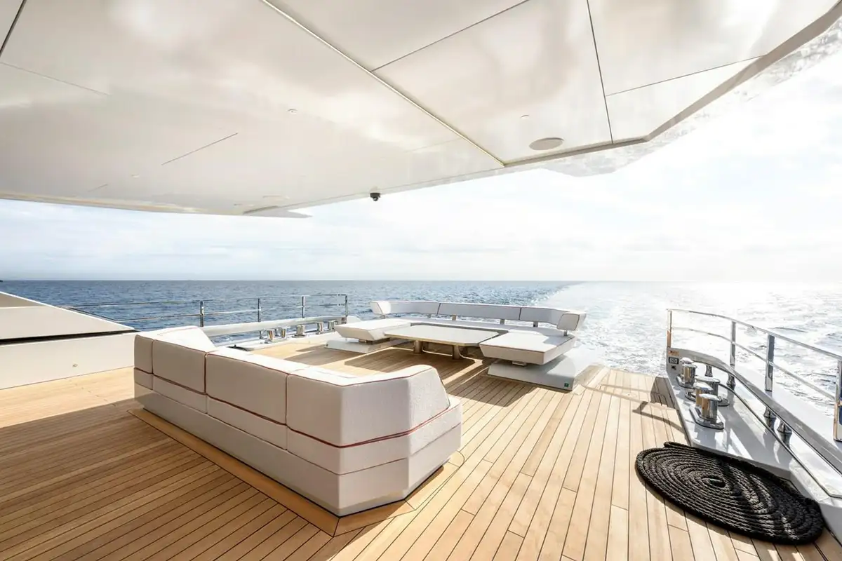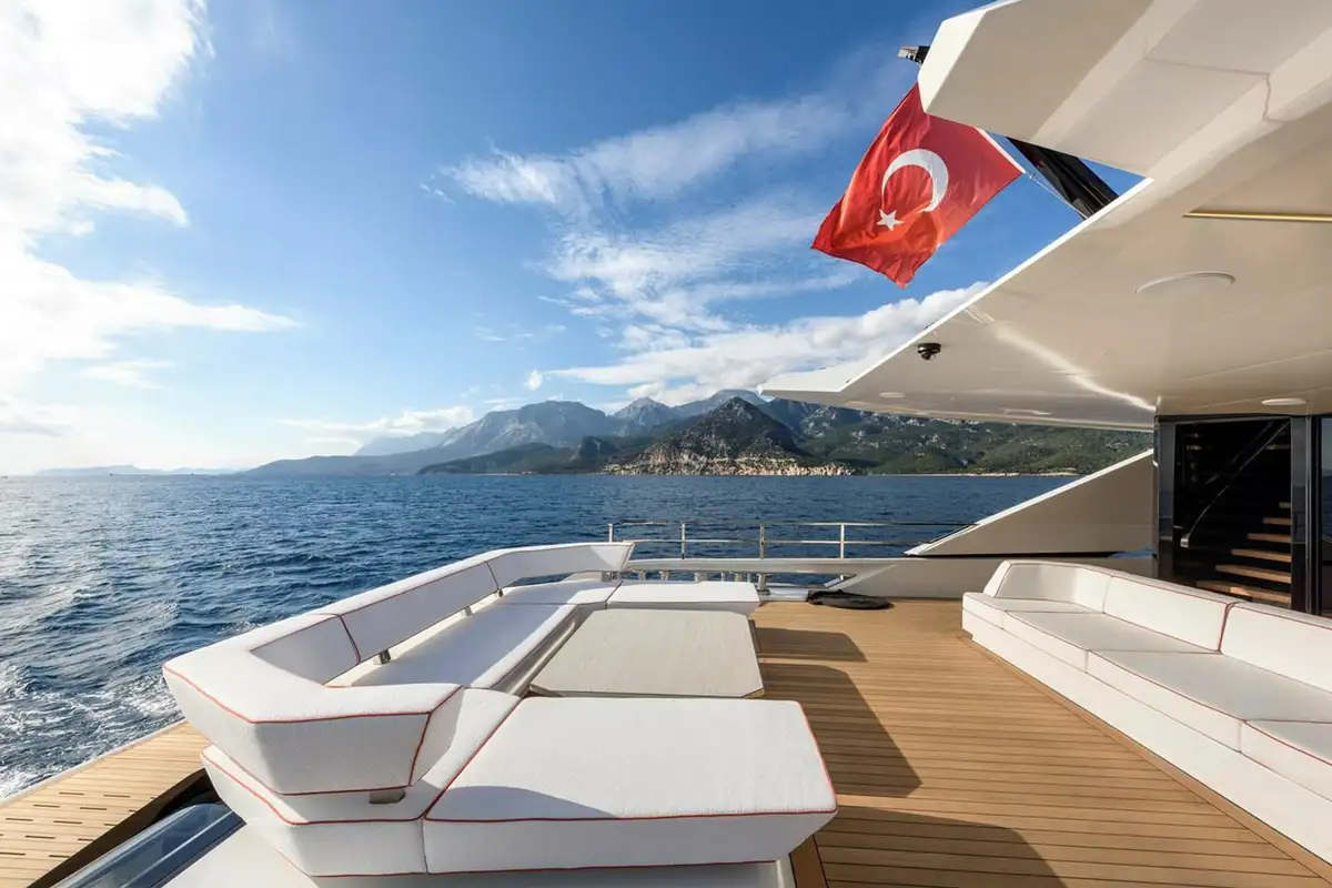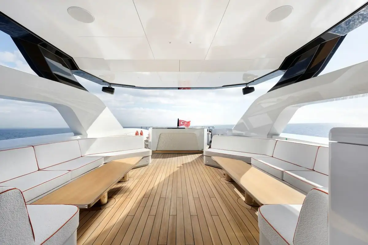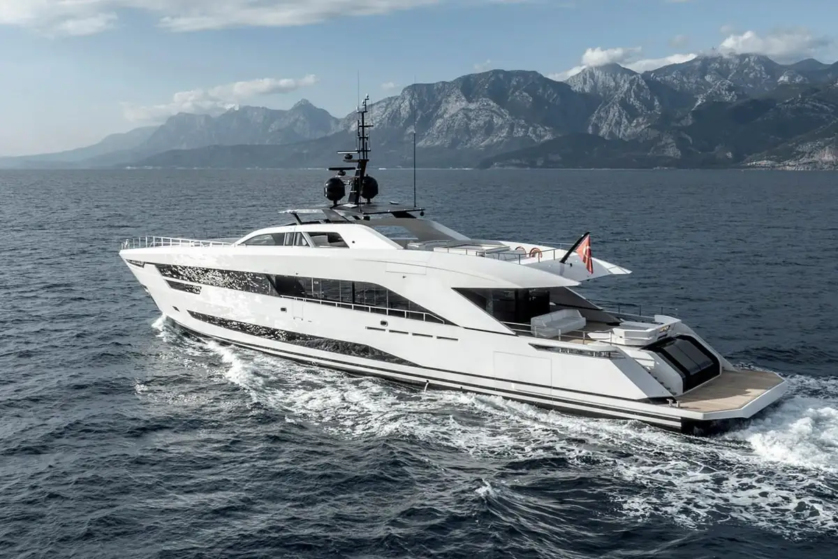 XIMENA, a 43.0 m Motor Yacht, built in Turkey by Alia Yachts and delivered in 2026. Her top speed is 22.5 kn and she boasts a maximum range of 3200.0 nm when navigating at cruising speed, with power coming from two MTU diesel engines. She can accommodate up to 10 guests in 5 staterooms, with 7 crew members waiting on their every need. She has a gross tonnage of 380.0 GT and she is built with a Teak deck, a Aluminum hull, and Aluminum superstructure.