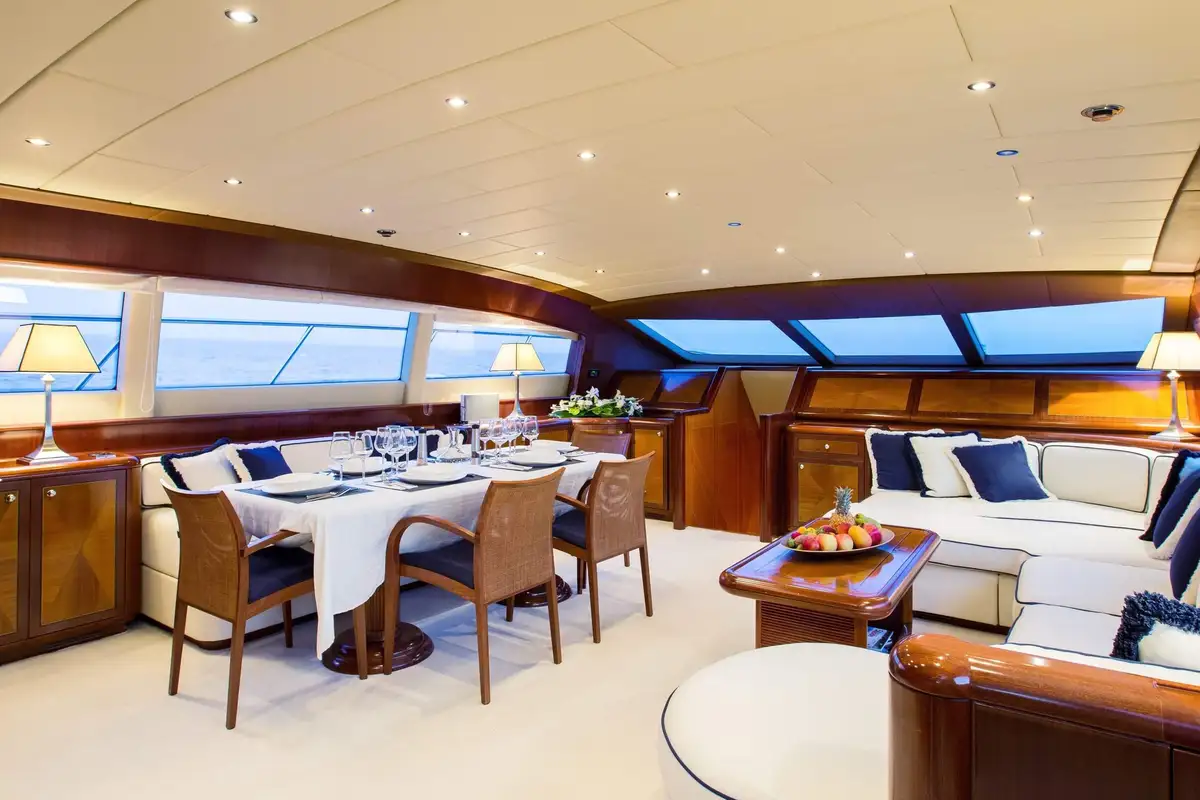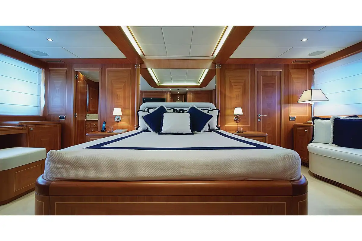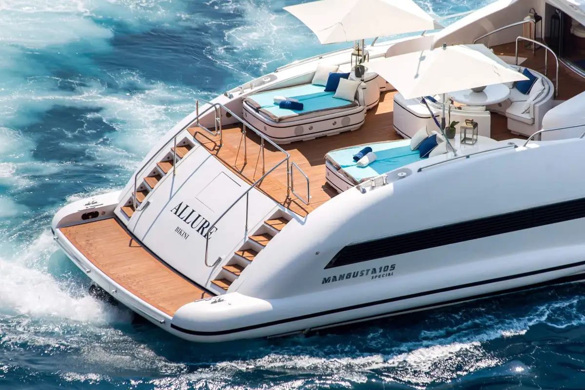 The 103-foot Mangusta, which underwent an extensive refurbishment in 2022, is the epitome of luxury and performance in high-end yachting. Known for its sleek Italian design and impeccable engineering, this vessel seamlessly combines elegance with cutting-edge technology.