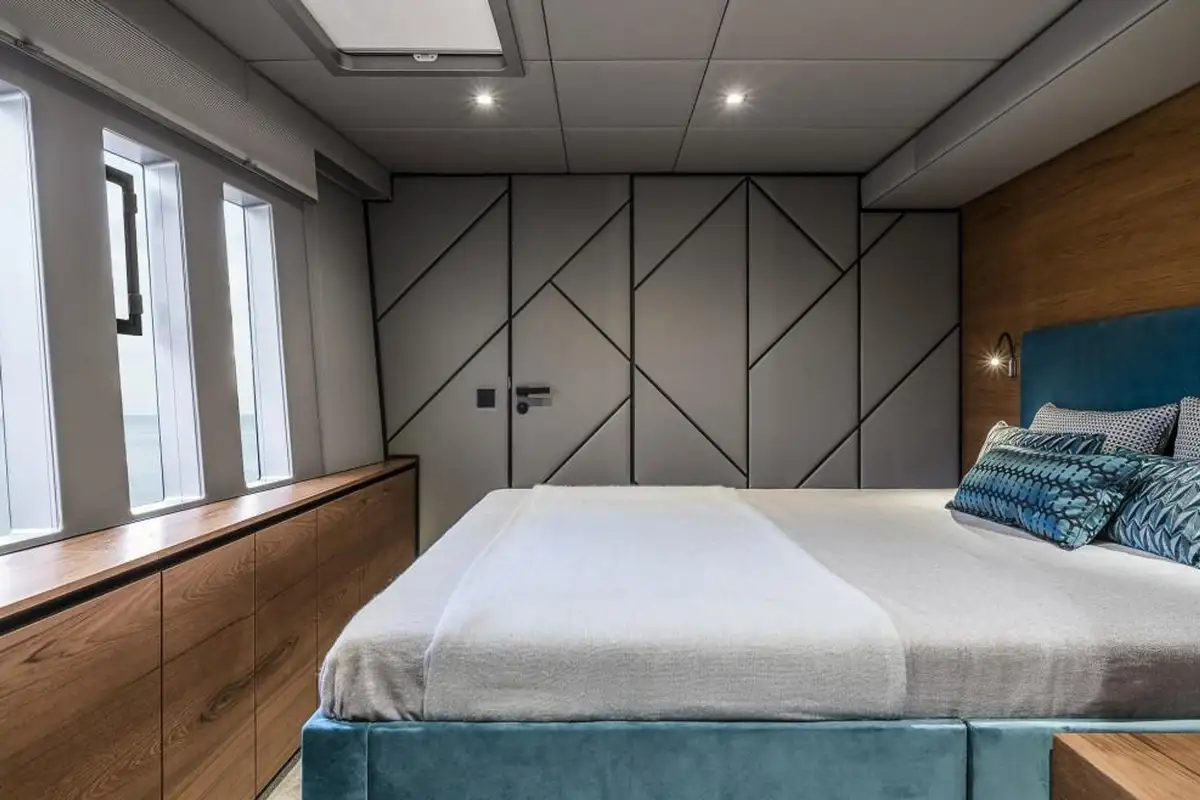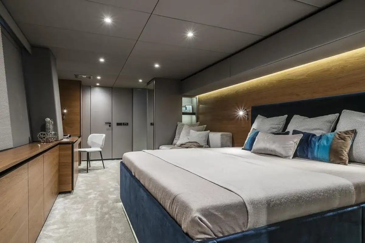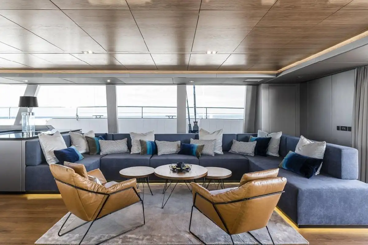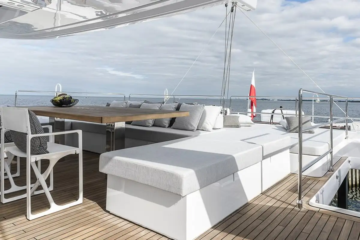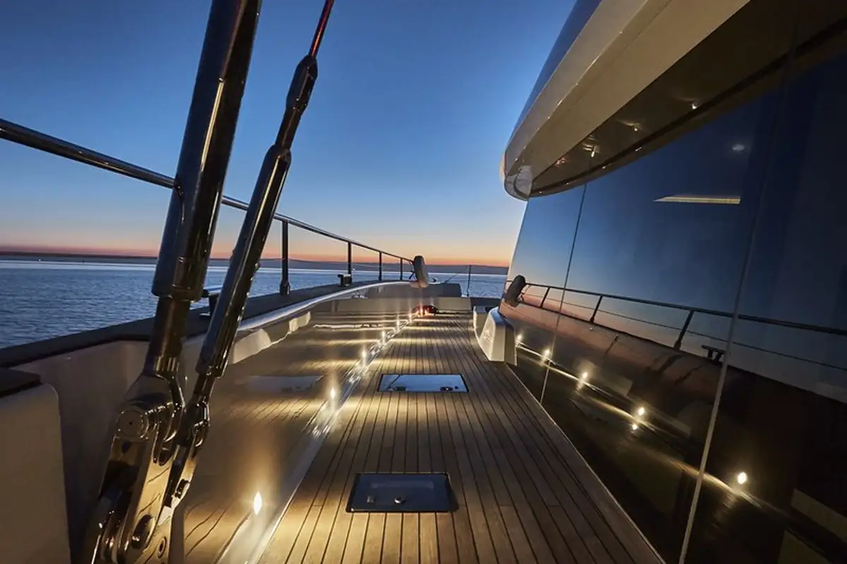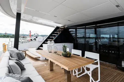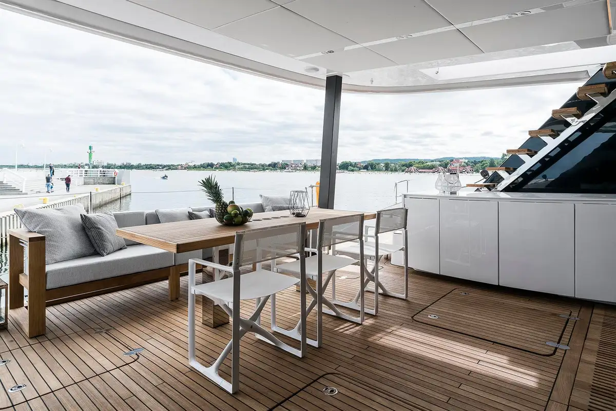 - Hydraulic swimming platform which can be raised to double the aft-deck living area