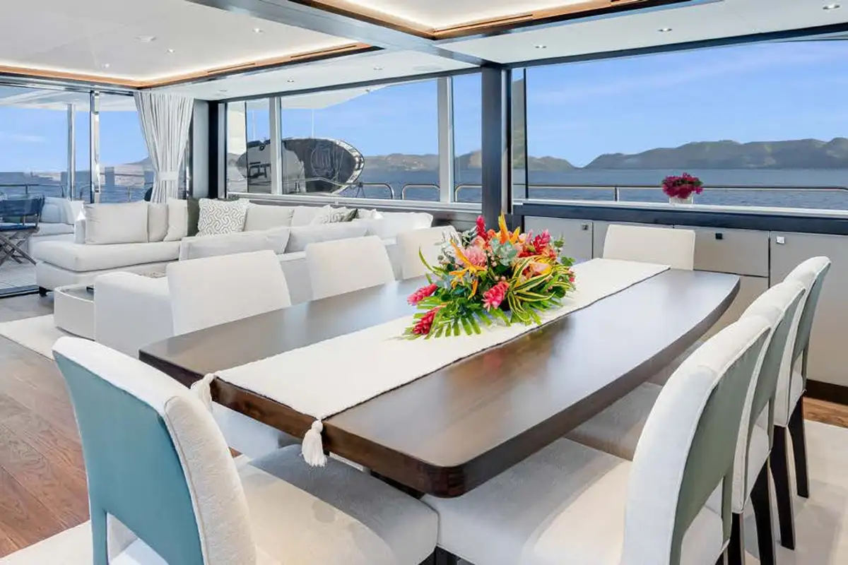 A perfect arc of sand, all but inaccessible by land, fire up the tender, explore the reef, then enjoy a BBQ on the beach with the sand between your toes.