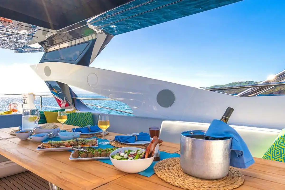 During your luxury yacht charter in St Lucia, make sure you visit Cap Maison. Dine on dishes that put a French twist on Caribbean classics under open-sided cabanas on a cliff with to-die-for views of the sunset. Or head down to Smugglers Cove Beach to the Naked Fisherman, to enjoy grilled steaks and spectacular seafood on a palm-topped terrace.