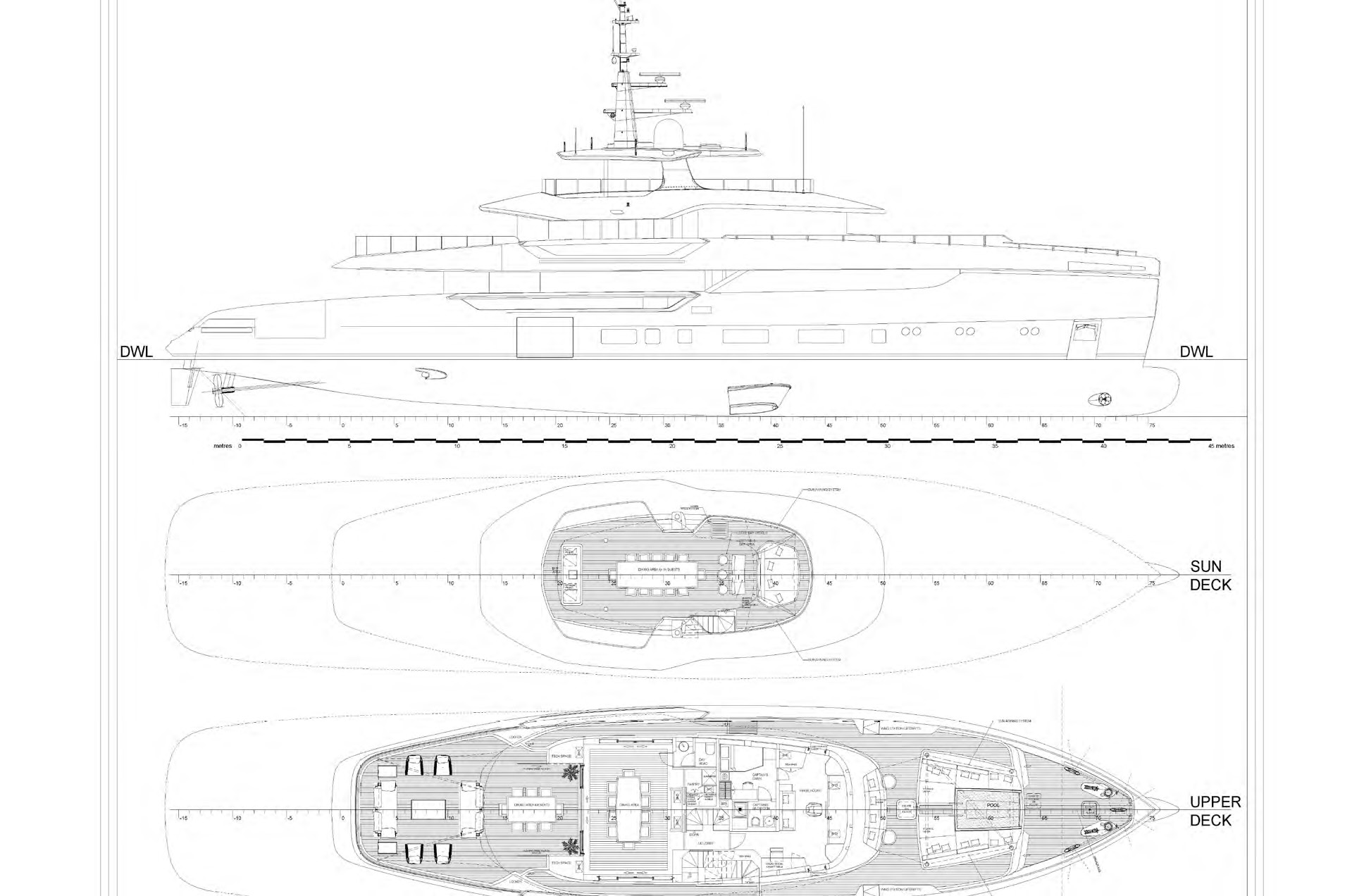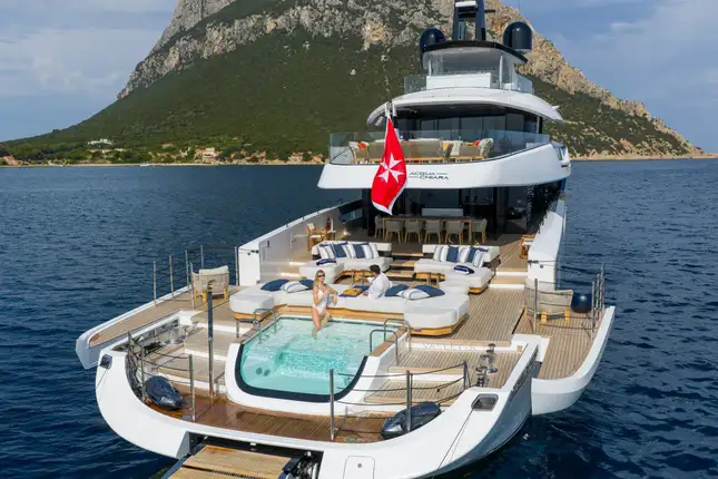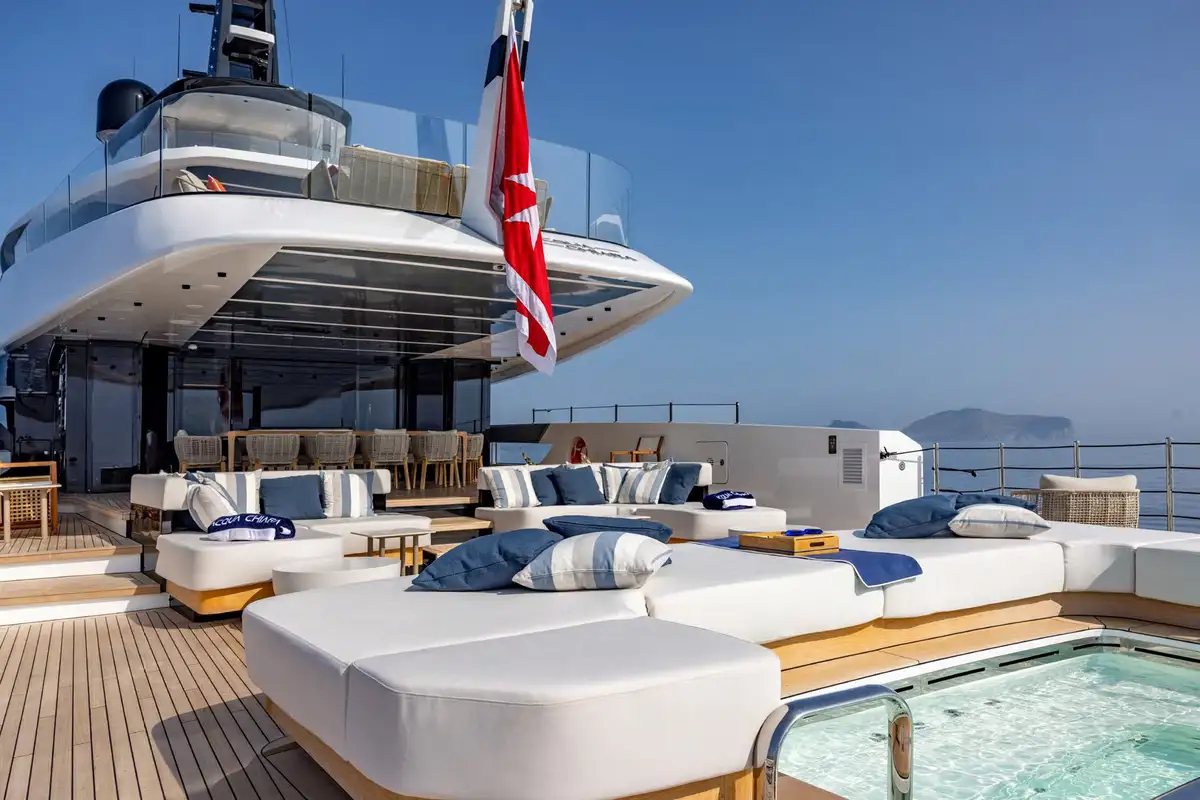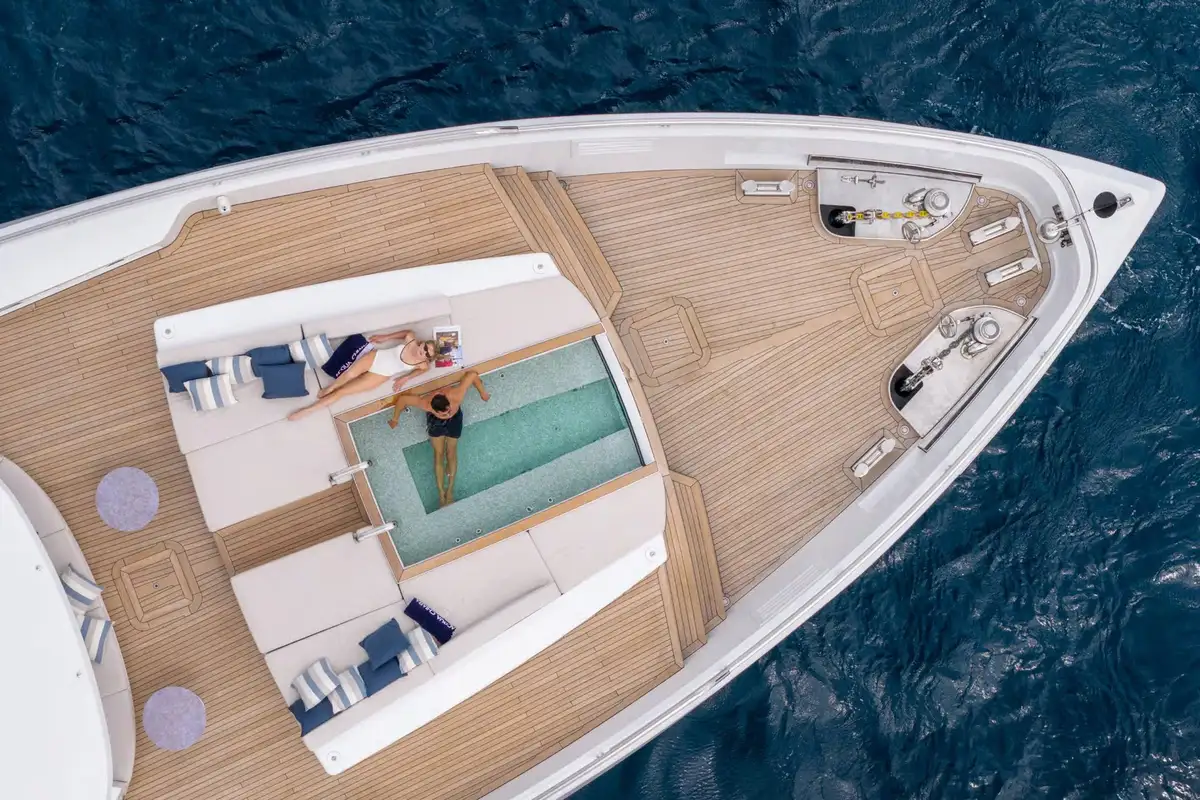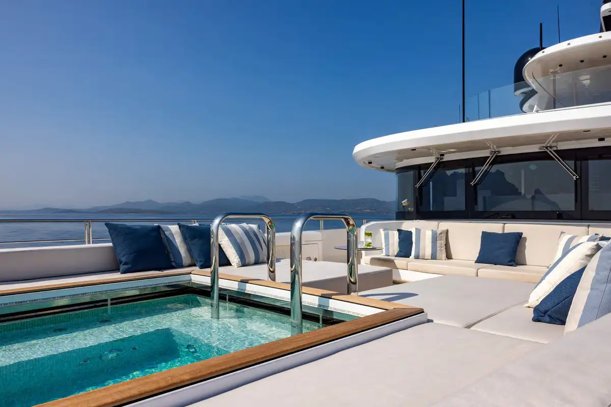 - Two deck jacuzzis: one on the main deck aft and another on the foredeck