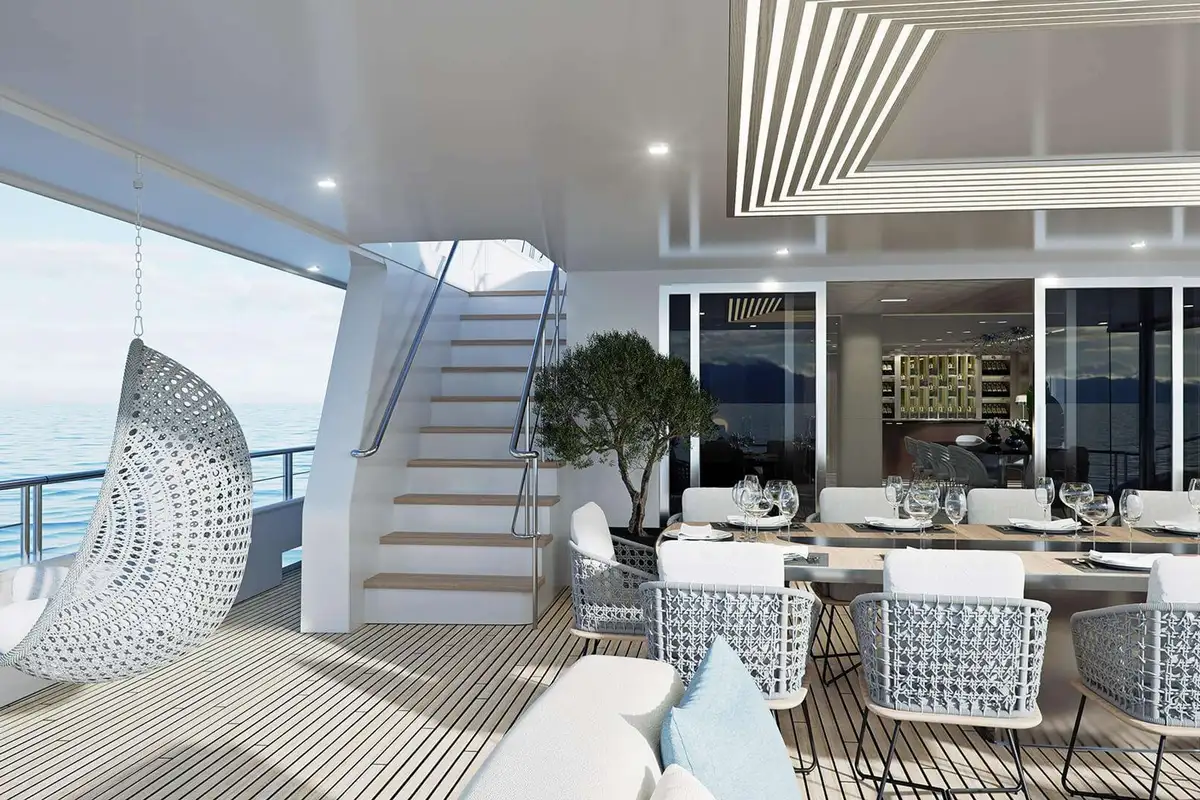 We are pleased to present the brand new 45.50-meter custom superyacht ADRI built for today's discerning sea voyagers. With its 10-meter beam and two imposing masts, she stands out with her graceful appearance and sophisticated lines. M/S ADRI is wider than other yachts in her category, which ensures superior comfort. Coupled with an interior that features oak furniture, light marble, a neutral color palette, and very large windows in the saloon, she oozes an impression of infinite space. ADRI has fantastic deck spaces with an onboard setup and all the luxurious lifestyle amenities to suit families, groups of friends, and couples. With ample relaxing areas, it is easy to find the perfect spot to be alone or socialize with your party.