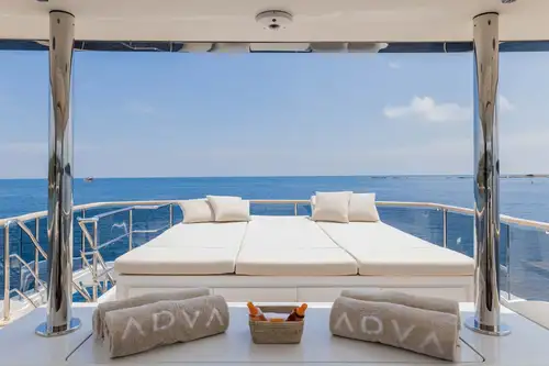 Fresh from an extensive interior refit, even though she’s just a few years old, ADVA is a spacious and distinctive 35m (115ft) tri-deck yacht. Designed for up to 12 guests in five cabins with a crew of seven, she offers a winning combination of ample living space, high-end Italian luxury and a calming, welcoming vibe. You’ll feel at home as soon as you set foot on board.