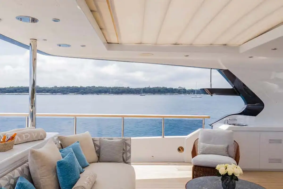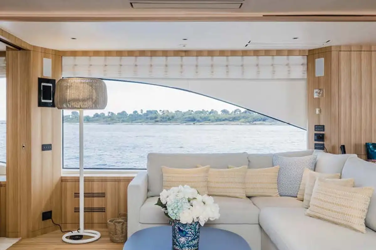 Wherever you choose to go on your cruise, she has powerful stabilisers to smooth her motion at all times, and there’s a reliable wi-fi Internet connection on board. The sundeck offers lounge seating in both sun and shade plus a full bar, sunbeds and a gym/fitness area.