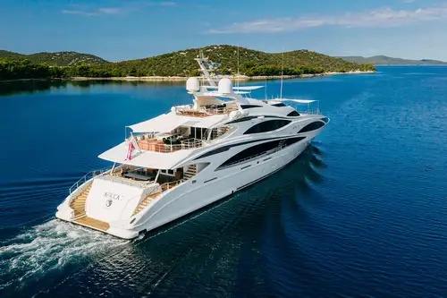 Built by Benetti in 2010 and extensively refreshed in between 2021 and 2025 including new paint, AFRICA I is a sleek yacht that balances Italian pedigree with charter-perfect functionality. With a chic interior, a standout crew of 12, this high-performance yacht continues to impress year after year. Whether you’re planning a family getaway, a multigenerational escape, or a celebrity-style vacation, AFRICA I offers an inviting ambiance and top-tier service that puts guest comfort front and center.