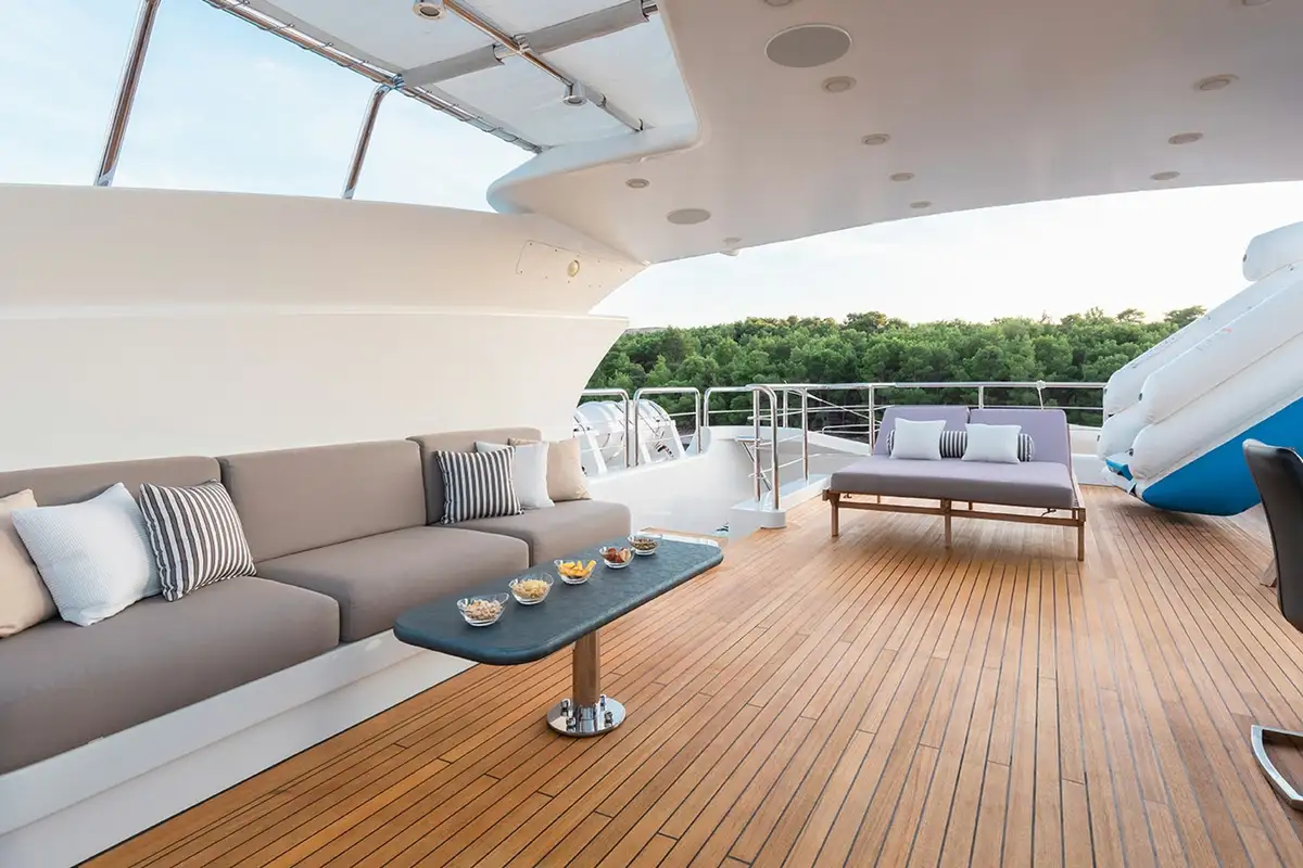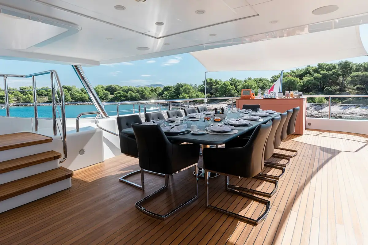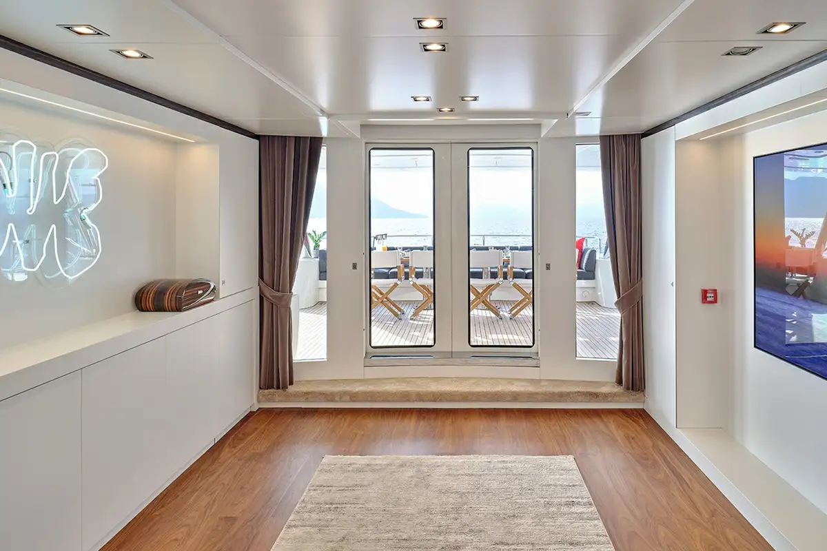 AFRICA I lives just as large outdoors. From her oversized swim platform to her multi-level al fresco dining areas, guests can bask in the sun or dine under the stars with ease. A spacious sundeck features a Jacuzzi and sun loungers, making it the go-to deck from morning workouts to sunset cocktails. The yacht’s ultra-smooth stabilizers ensure maximum comfort, both at anchor and underway.