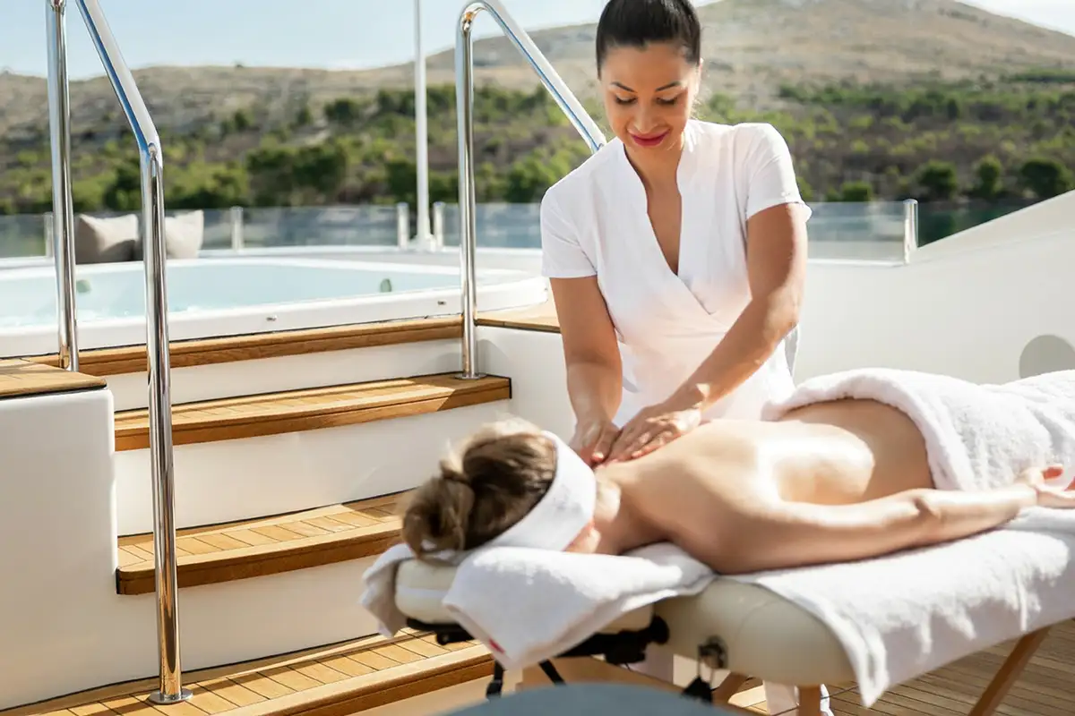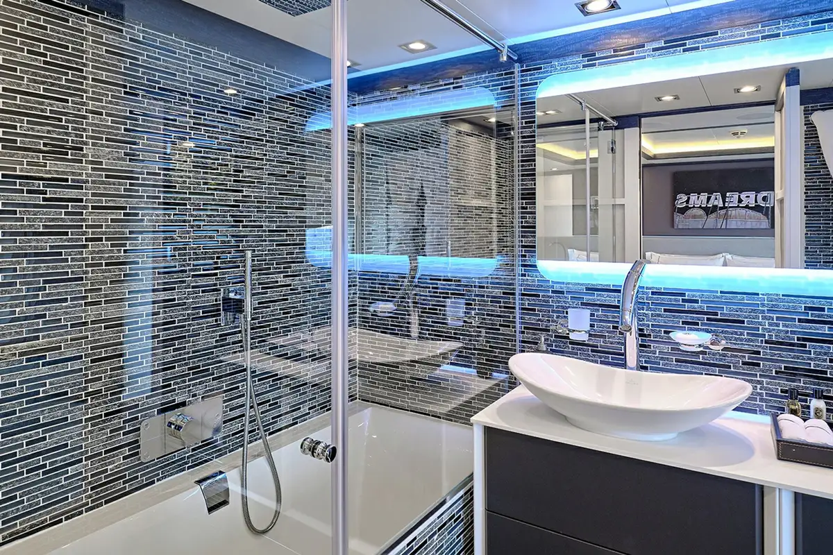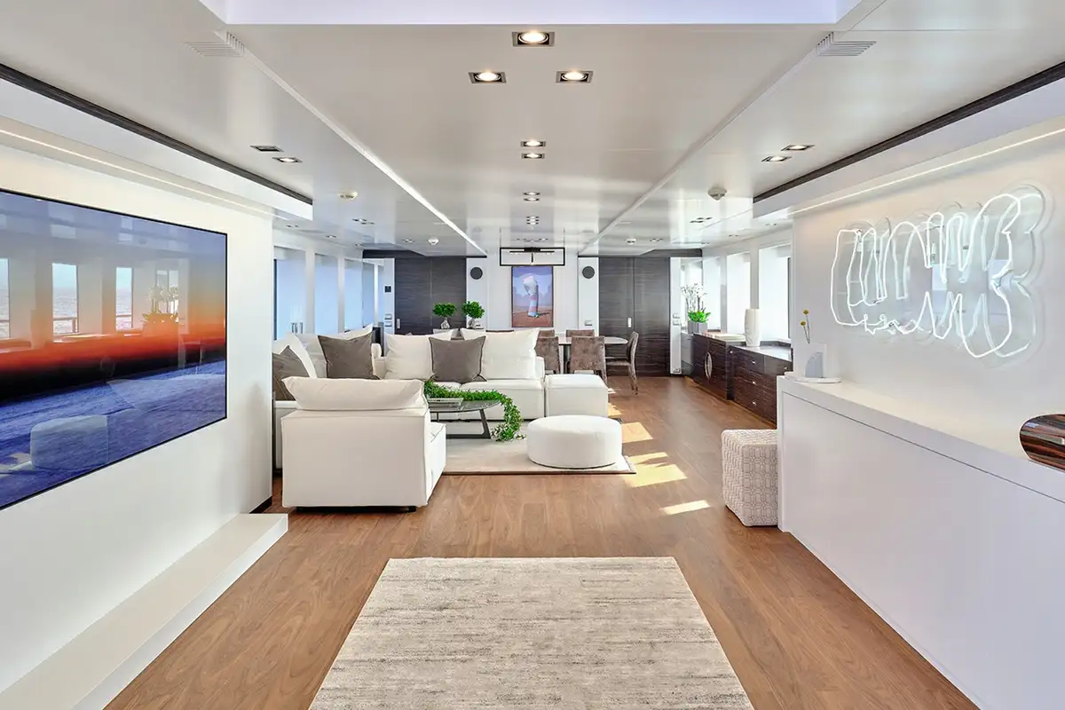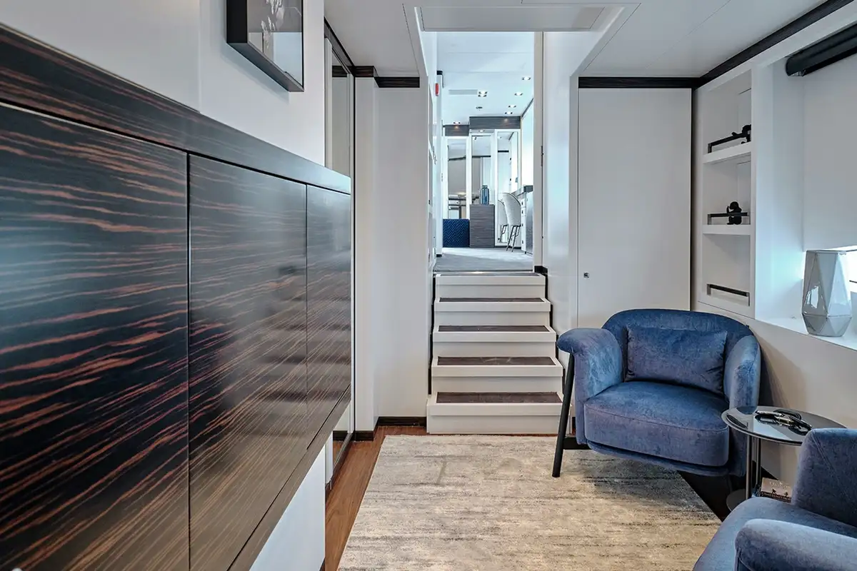 AFRICA I lives just as large outdoors. From her oversized swim platform to her multi-level al fresco dining areas, guests can bask in the sun or dine under the stars with ease. A spacious sundeck features a Jacuzzi and sun loungers, making it the go-to deck from morning workouts to sunset cocktails. The yacht’s ultra-smooth stabilizers ensure maximum comfort, both at anchor and underway.