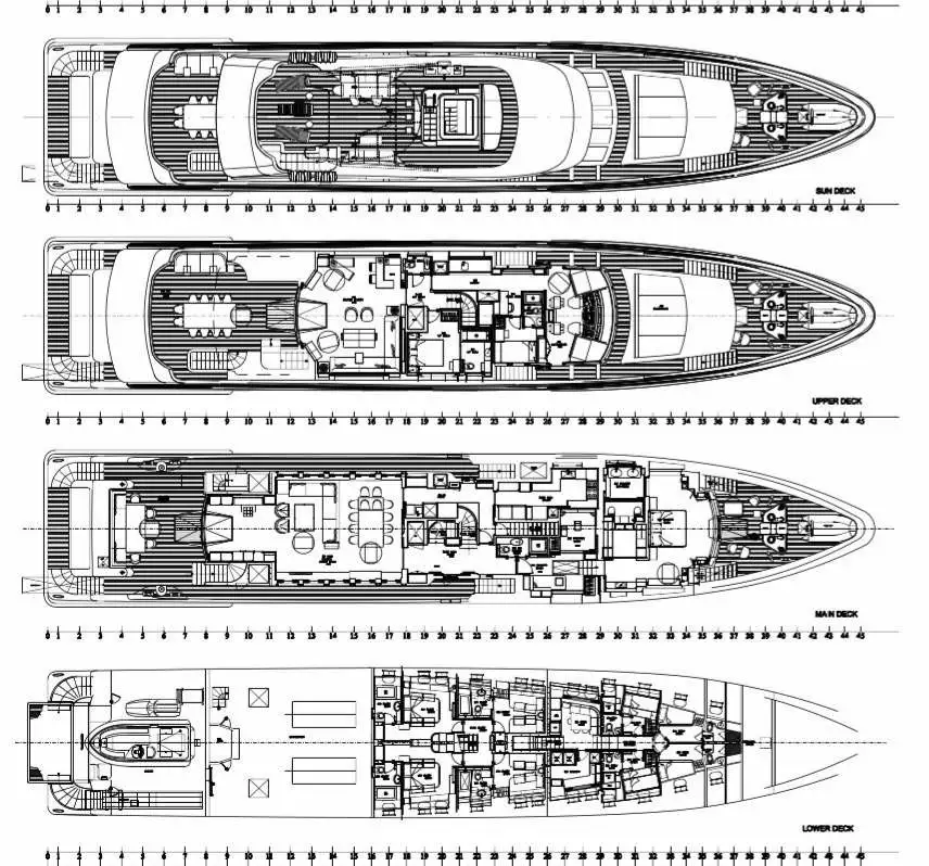 AFRICA I lives just as large outdoors. From her oversized swim platform to her multi-level al fresco dining areas, guests can bask in the sun or dine under the stars with ease. A spacious sundeck features a Jacuzzi and sun loungers, making it the go-to deck from morning workouts to sunset cocktails. The yacht’s ultra-smooth stabilizers ensure maximum comfort, both at anchor and underway.