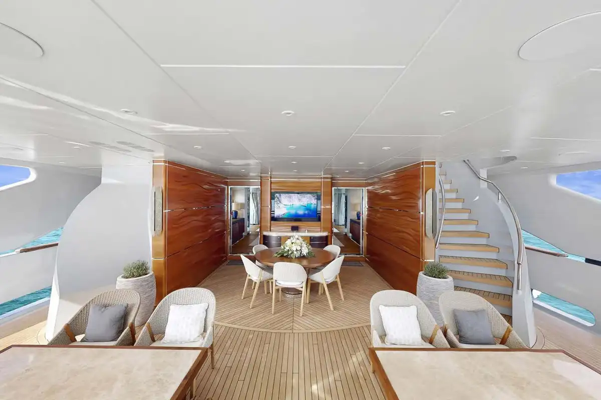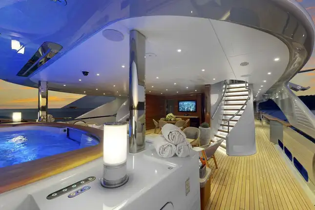 From her main deck aft pool with waterfall to her elevator serving lower to bridge decks, from her sun deck jacuzzi to her vast master suite with private balconies ether side, AFTER YOU is a yacht that delivers the complete charter experience in a way that you'd expect from a 65-70m yacht, all neatly tied up in a sumptuous 55m package.