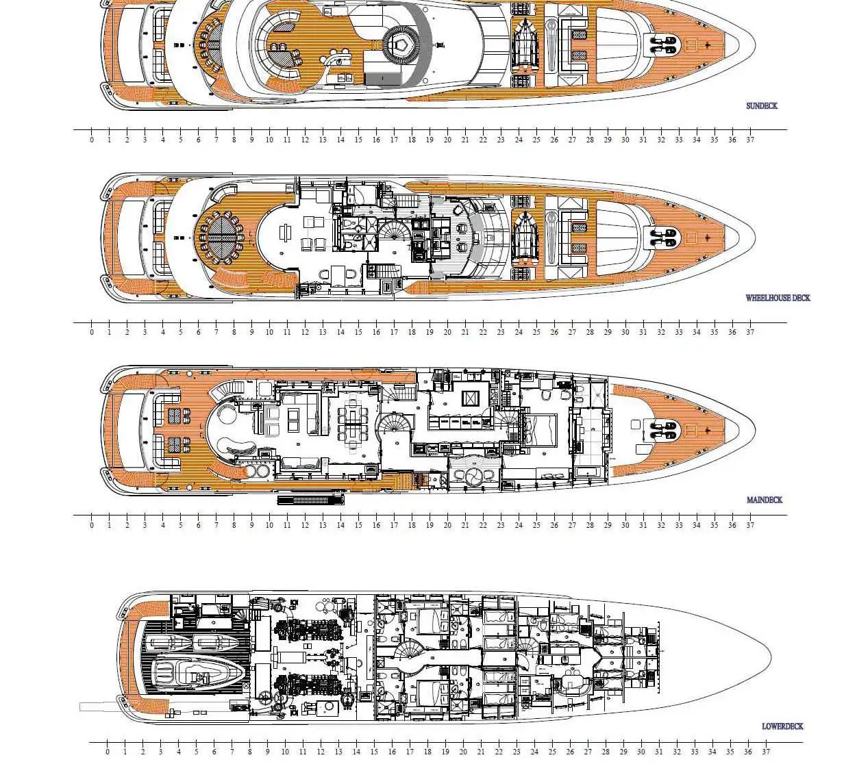 Her impressive yet inviting interior is masterfully configured and styled, with some striking pieces of modern design. She offers a generous 548GT of luxurious inside living space, with accommodation for up to 12 guests on three main levels, plus an excellent range of innovative open-air deck spaces. And she can cover long distances in a remarkably short time with a top speed of 24 knots. Monaco for breakfast and Corsica for lunch? No problem!