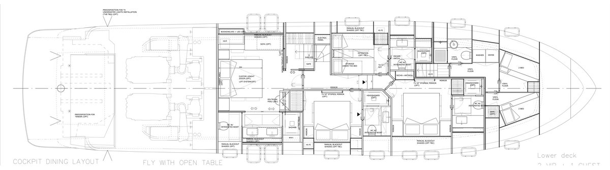 - Zero speed stabilisers to reduce any rolling motion at anchor