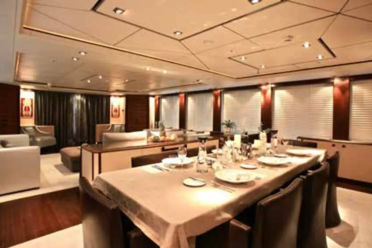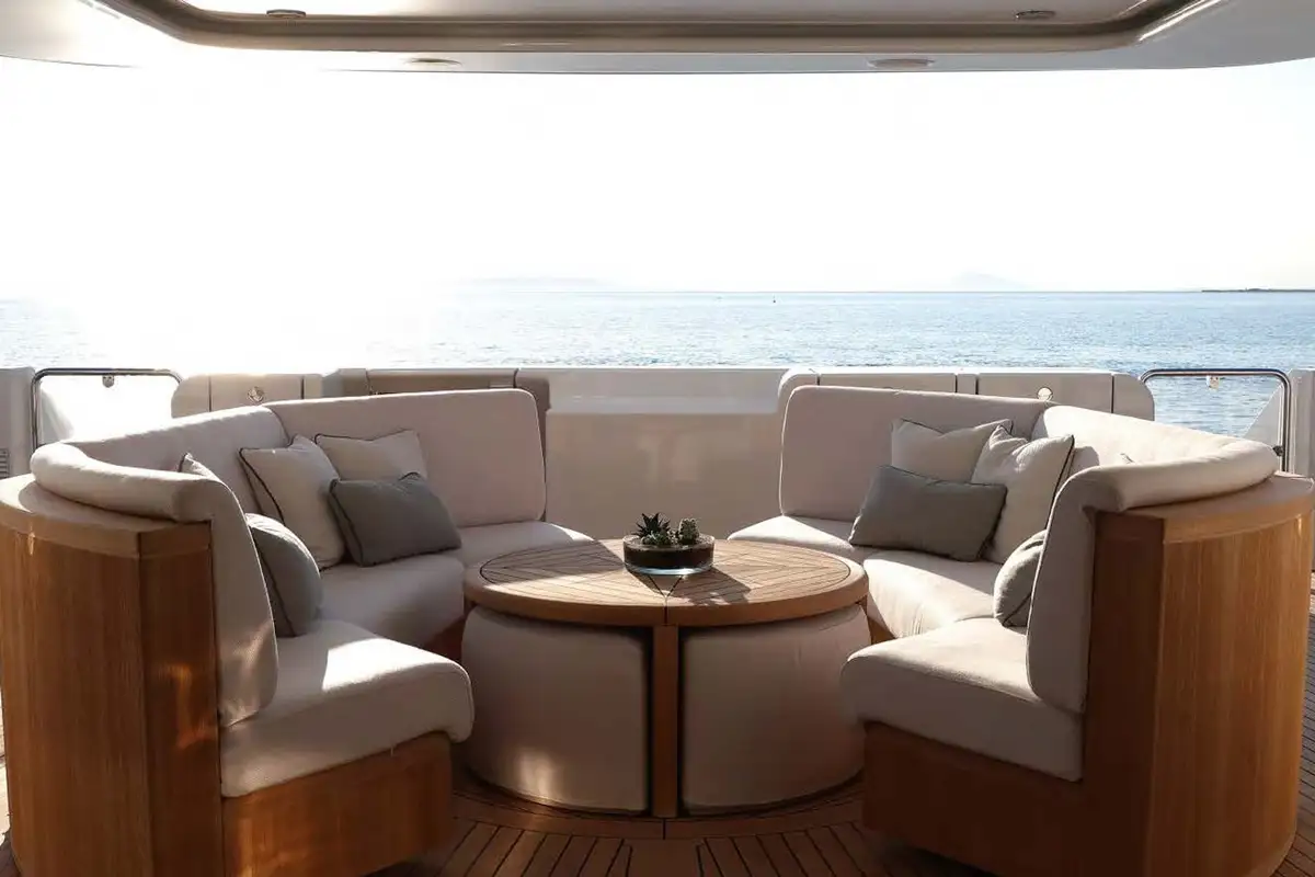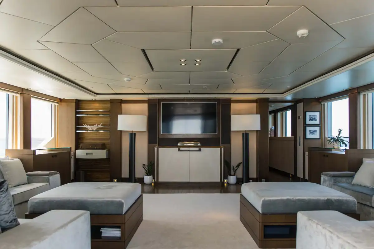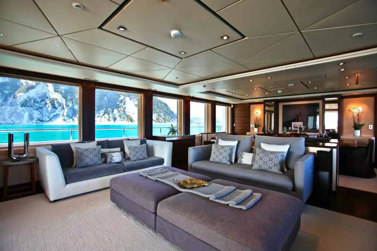 Inside too, ALALYA spoils you. Her Cristiano Gatto Design interior is contemporary, stylish, calming and fuss-free. The communal guest areas are harmonious spaces, designed to help you relax and unwind. The plush sofa seating in the main deck saloon benefits from large picture windows that stretch forward into the formal dining area. They provide magnificent views of your location when at anchor, and blinds provide privacy when in port. On the upper deck, the sky lounge has a central TV with two L-shaped sofas facing it, perfect for catching a movie or watching a must-see sporting occasion.
