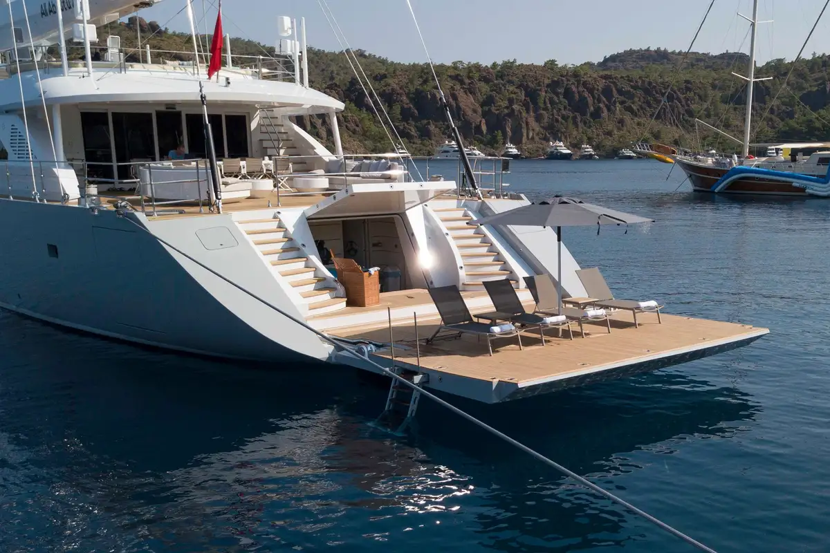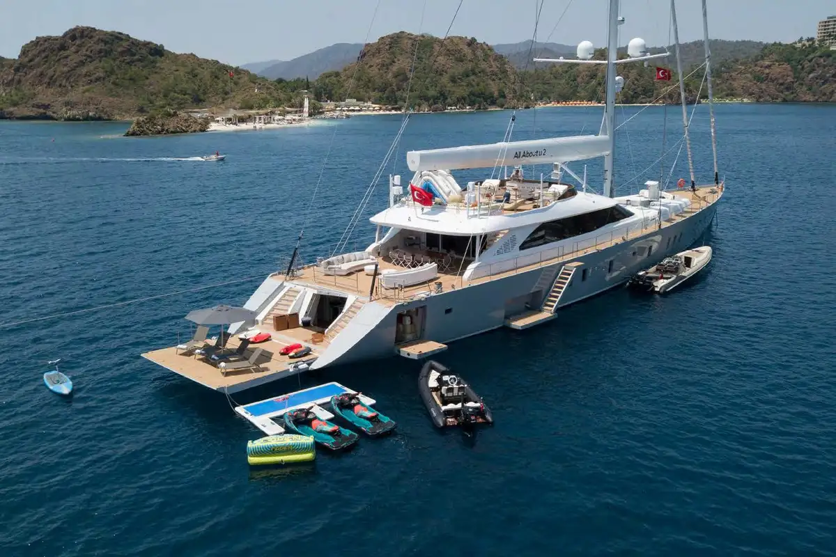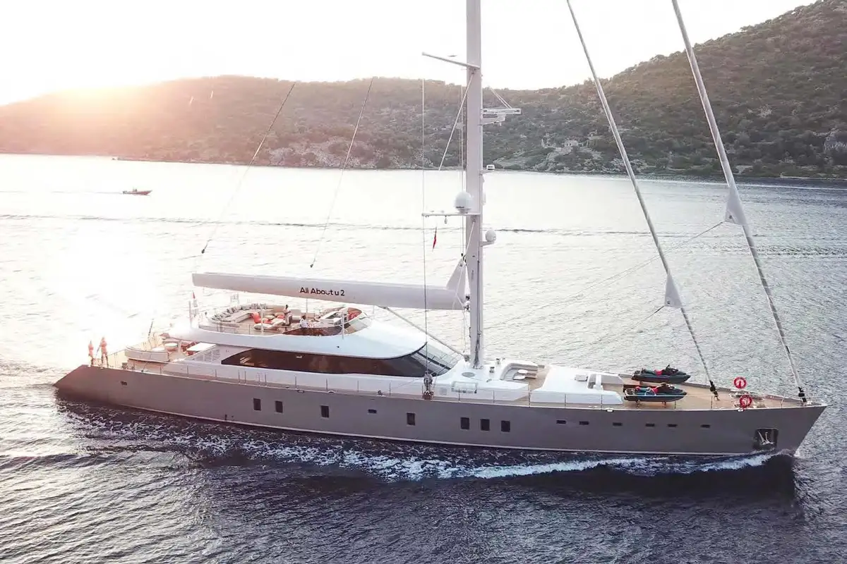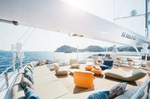 Join ALL ABOUT U 2 50m (164ft) and appreciate sailing on this magnificent modern sailing yacht in the idyllic waters of Turkey and the Eastern Mediterranean. ALL ABOUT U 2 has four gorgeous deck areas dedicated to guest relaxation.