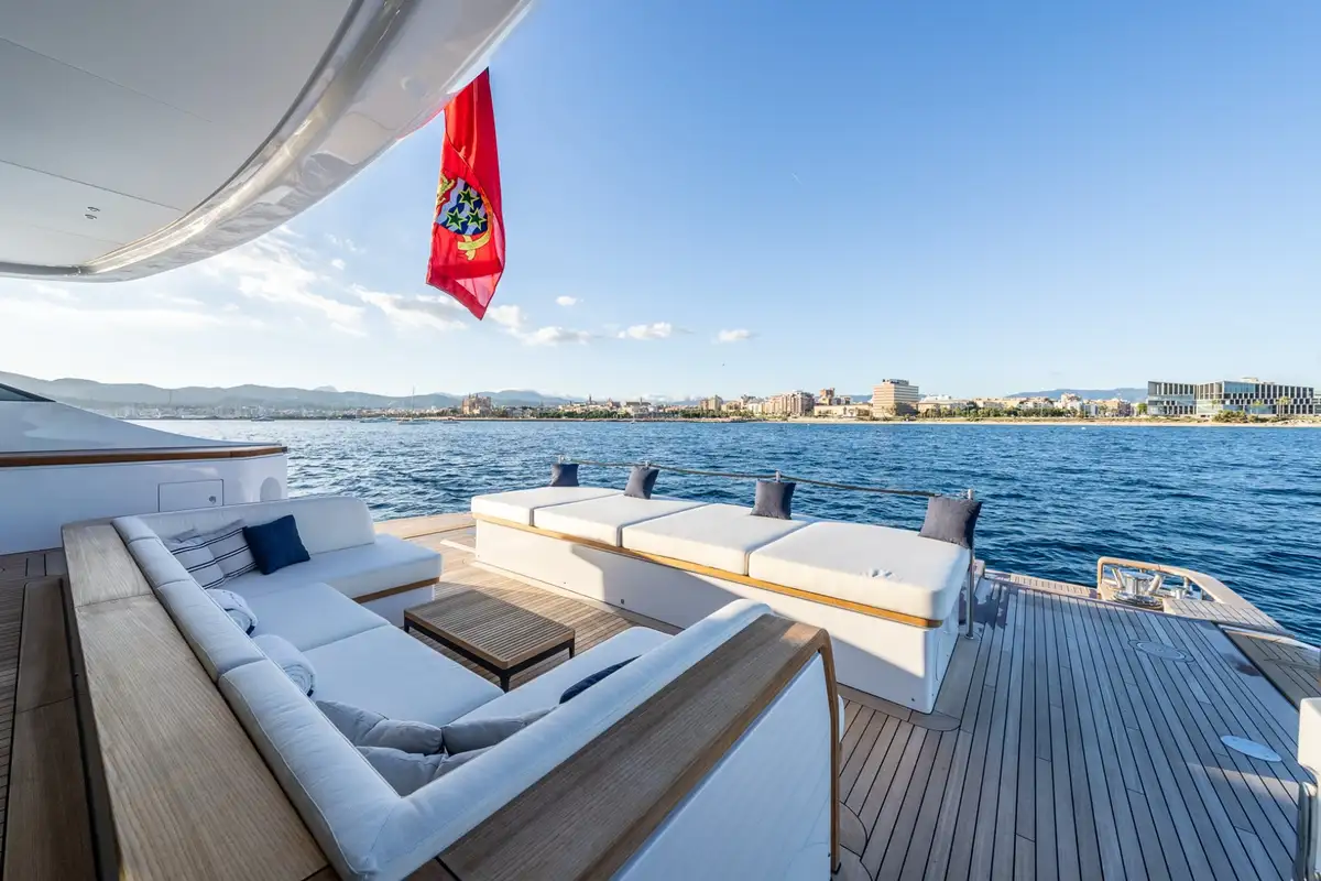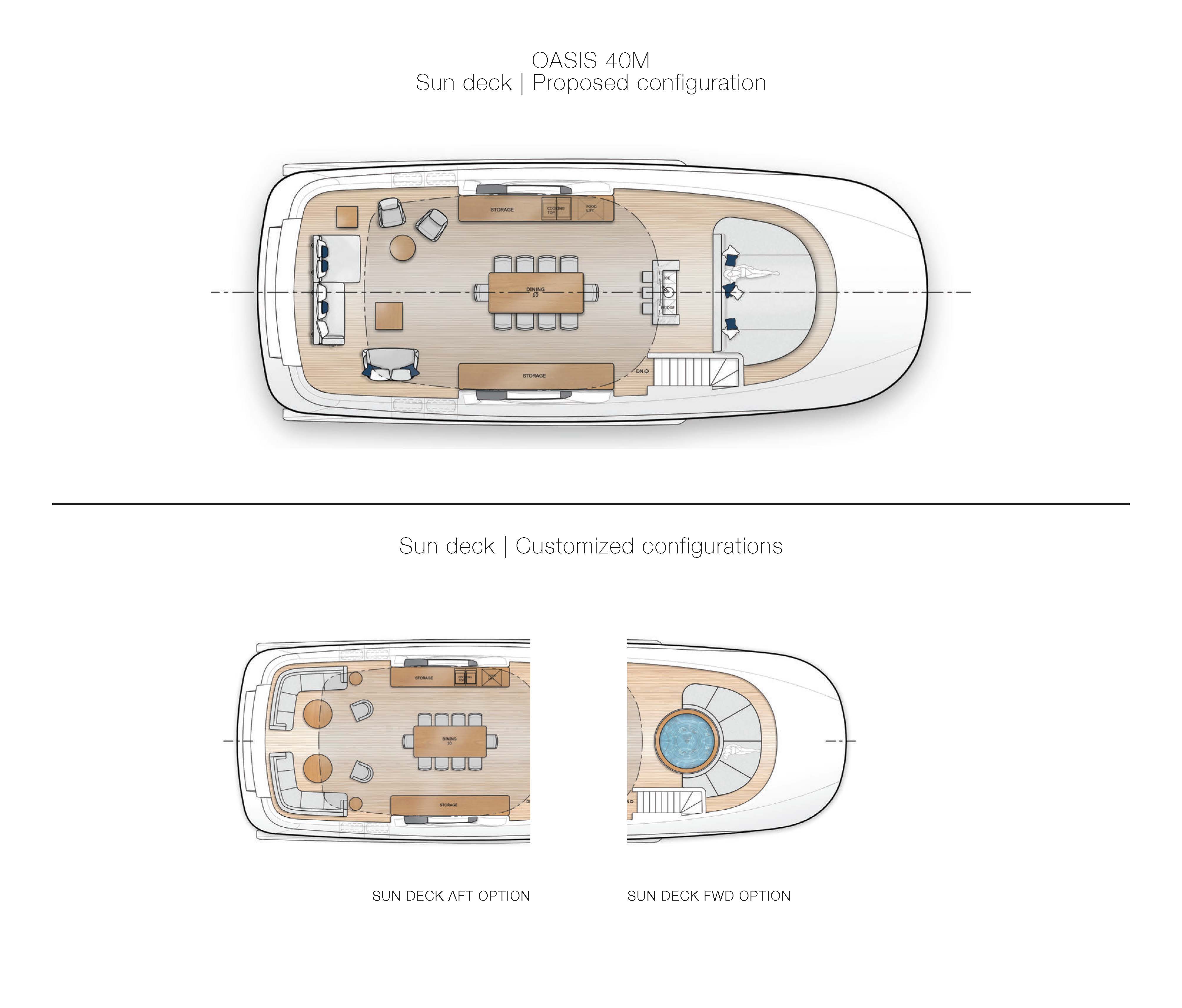 Benetti are renowned for clever use of space, and ALPHA WAVES is exceptional in this regard. The foredeck lounge is both snug and expansive, with seats for a large group to gather and four sunbeds too. The upper aft deck is a stylish lounge with armchairs in shade and sofas in full sun. And the sundeck is a magnificent, uncluttered space with a bar at the forward end, an open-air lounge facing aft and a splendid dining table amidships with ample shade. Glass bulwarks fore and aft make the excellent views even better.