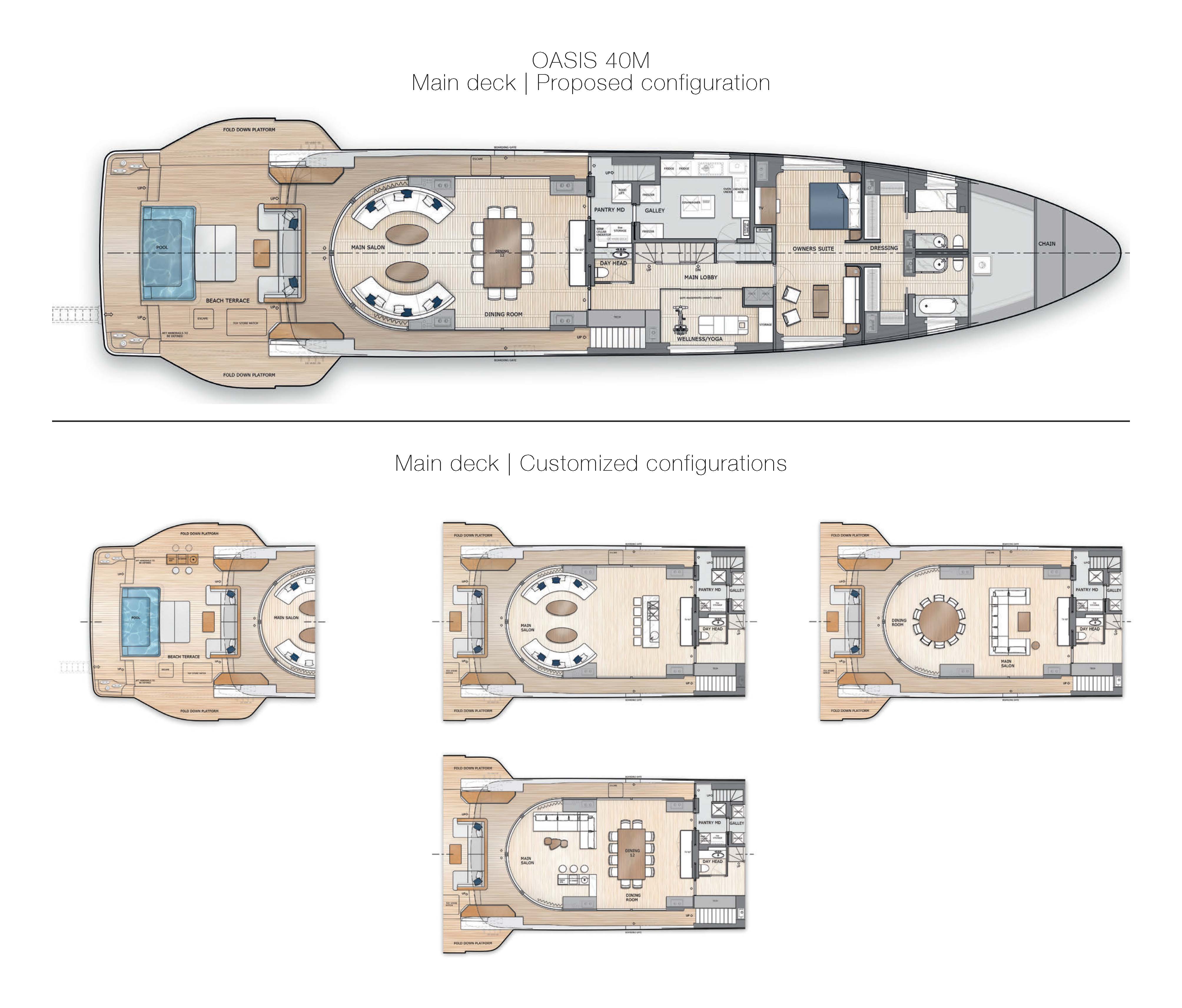 She carries three tenders and a wide range of toys. Highlights include a 12-metre (40ft) power cat with 1,200hp, a dedicated fishing boat, SeaBobs, kitesurfing kit – and a whole lot more.