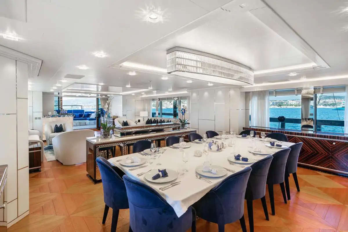 Service on board is intuitive and composed, delivered by a crew of eleven who understand the rhythm of a refined charter. From gym facilities and spa-style amenities to a full collection of watertoys, including jetskis, SeaBobs, eFoils and inflatables, every experience is handled with care and discretion.