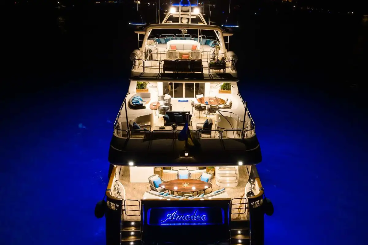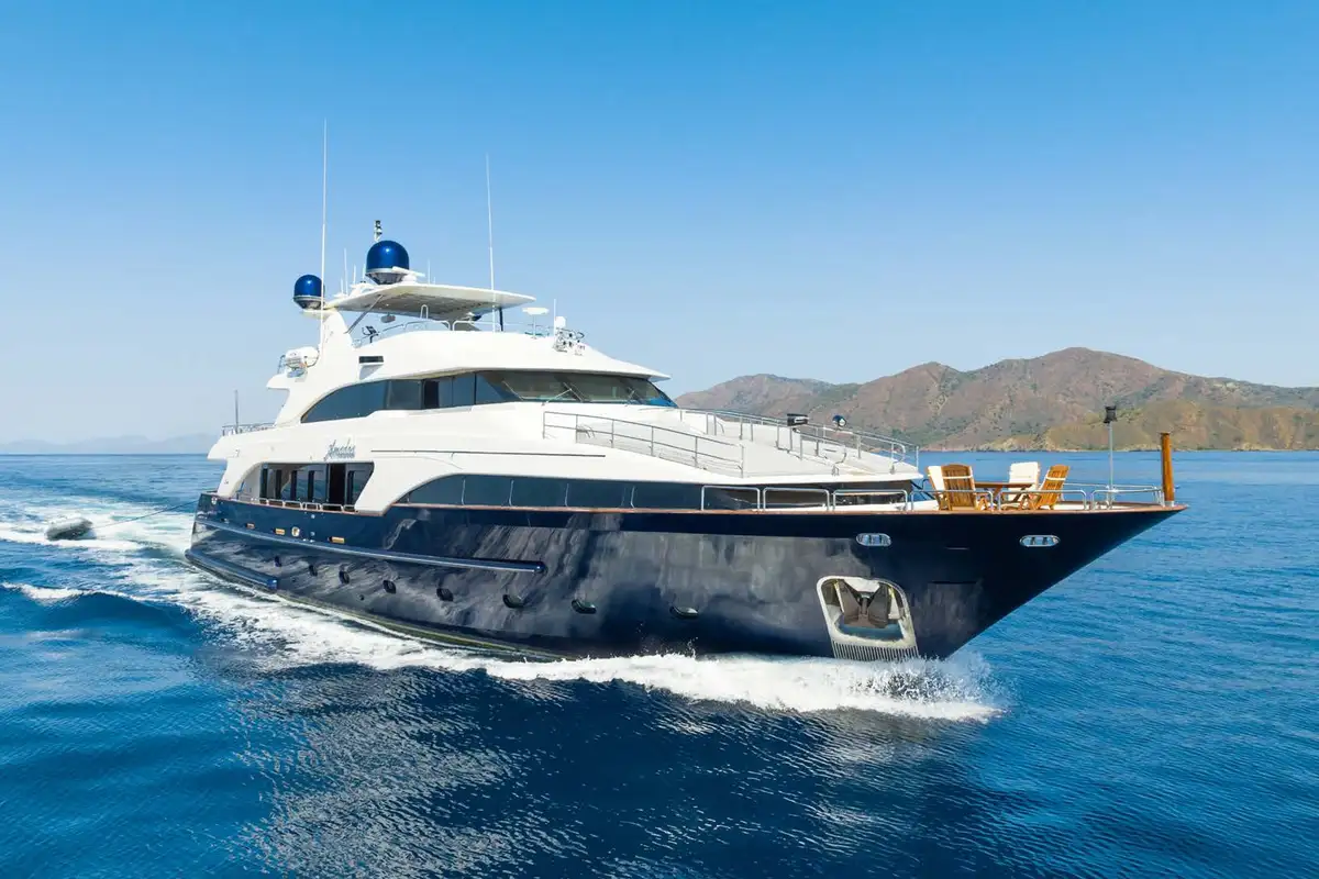 Launched by Benetti in 1999 and extensively refitted in 2023, the 35.1m (115.2ft) AMADEA is a beautifully balanced yacht combining classical lines and traditional décor with fully modern amenities. Designed with guest enjoyment in mind, she offers everything from a sun deck jacuzzi and outdoor cinema to 4K smart TVs and an impressive collection of watertoys.