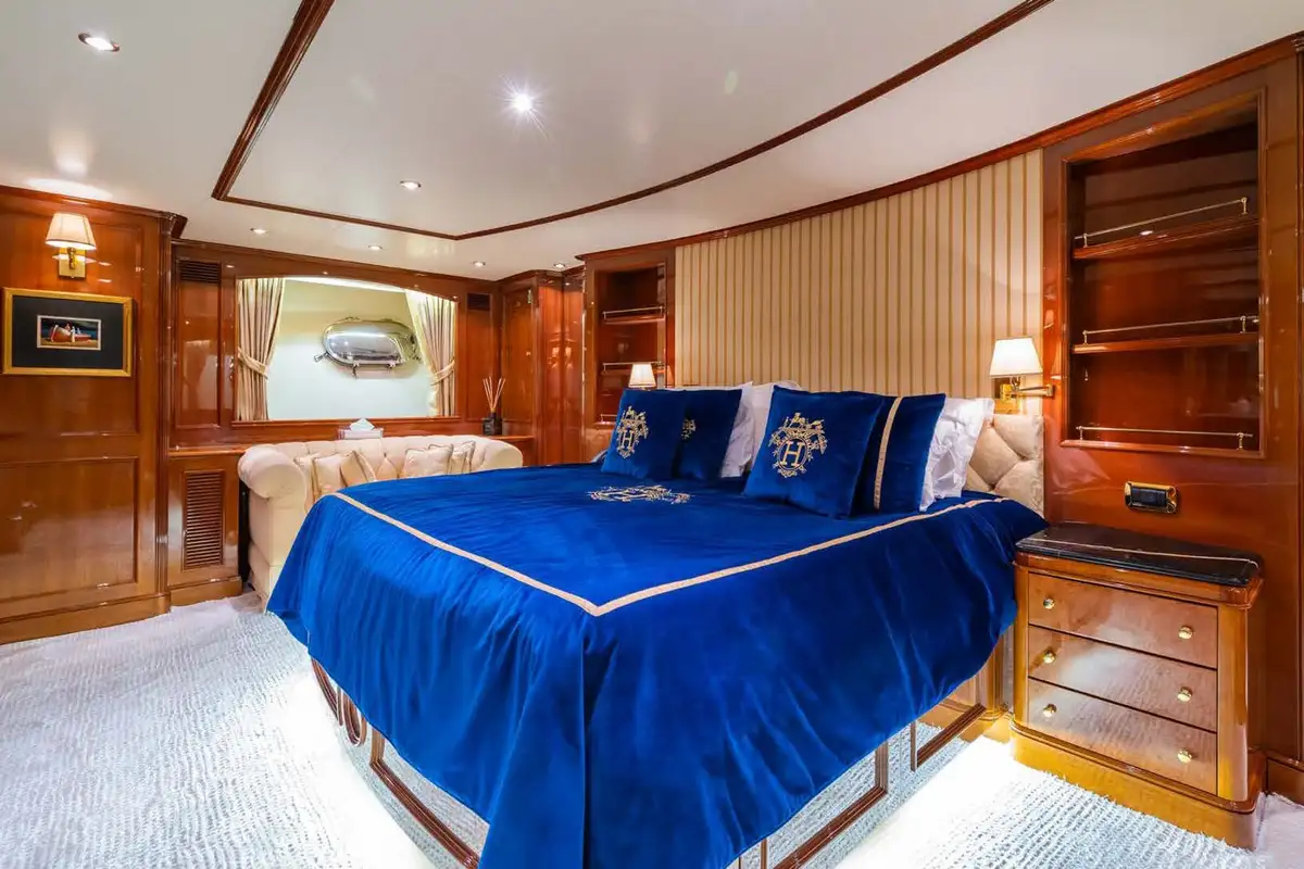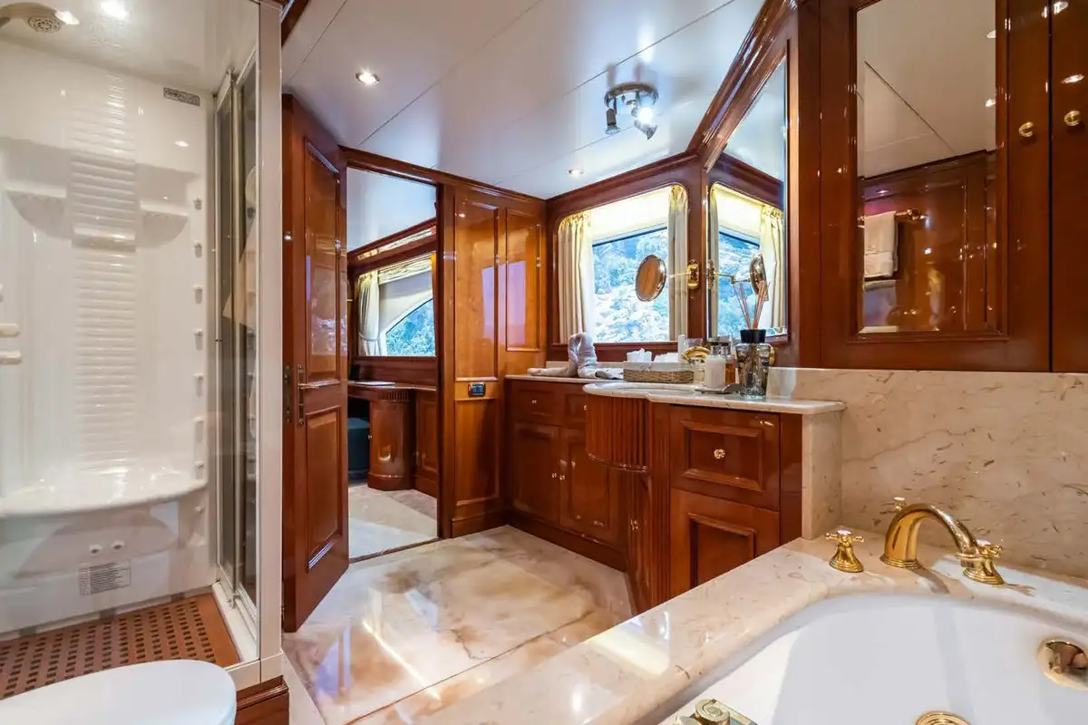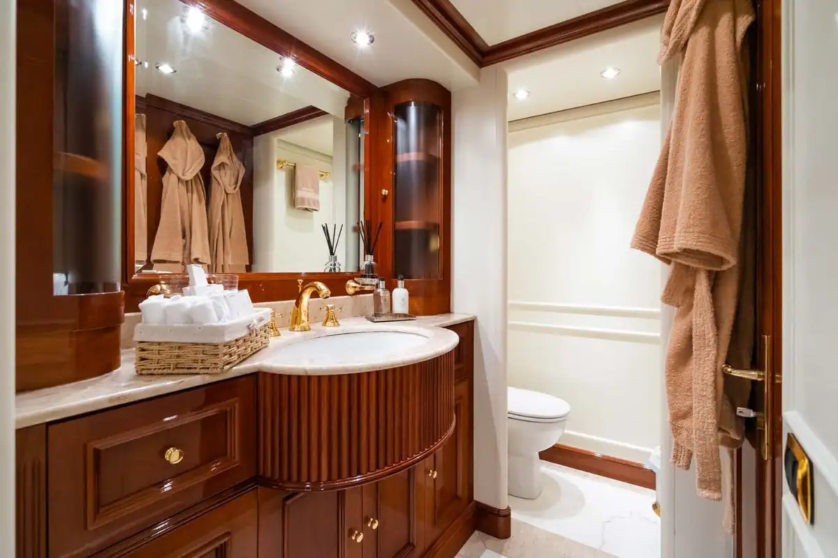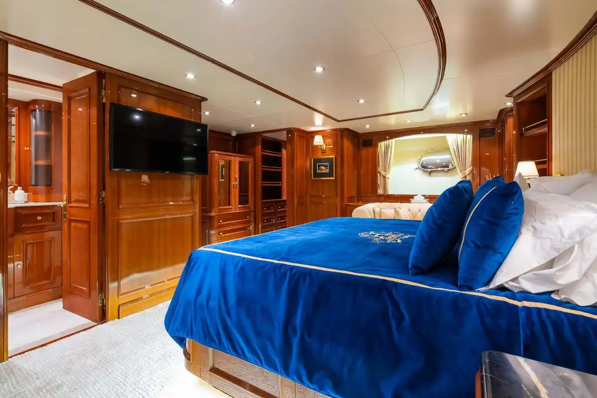 AMADEA accommodates up to 10 guests in four spacious cabins. The full-beam master suite, located on the upper deck, offers direct access to the exterior. On the lower deck, a full-beam VIP and two twin cabins provide comfortable accommodation, while a king-sized sofa bed in the media room adds versatility.