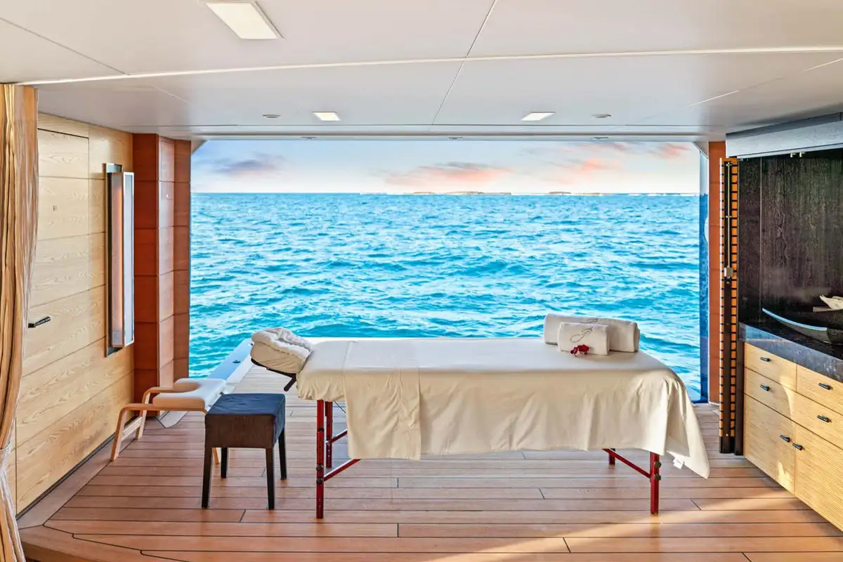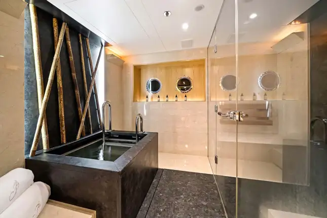 Start the day with a workout in the beach club gym by the water’s edge with open air and ocean views. Follow your session with a cooling dip or soothe your aching muscles in the Asian spa with plunge pool, sauna and steam room. Enjoy a well-deserved breakfast on the bridge deck and discuss the day's plans with the captain. After breakfast, relax and explore the many lounging areas across the five decks. Guests gravitate to the sun deck where there is a large jacuzzi pool with both sun pads and more shaded lounging forward. Alternatively, the main deck aft is always a great space to spend family time.